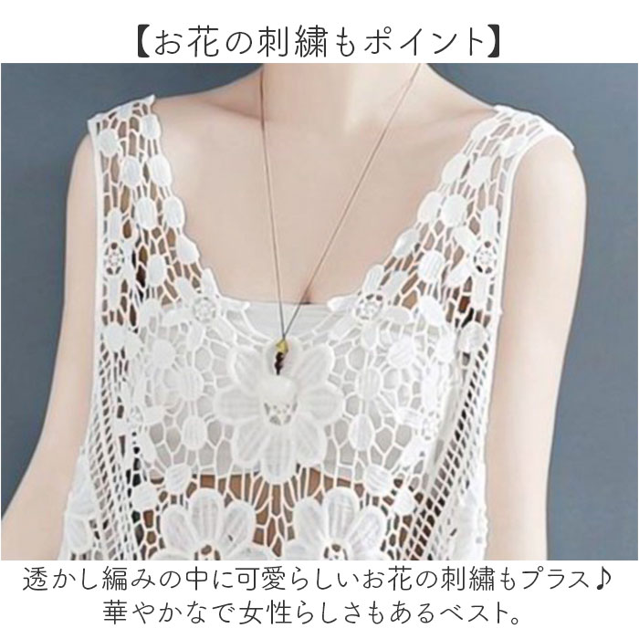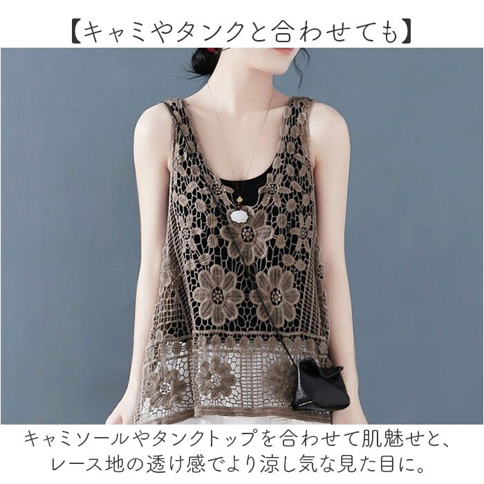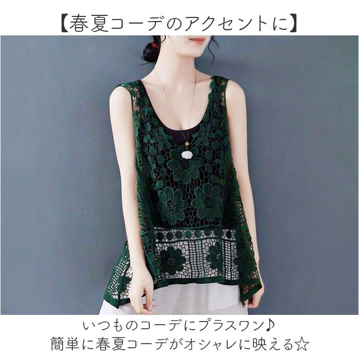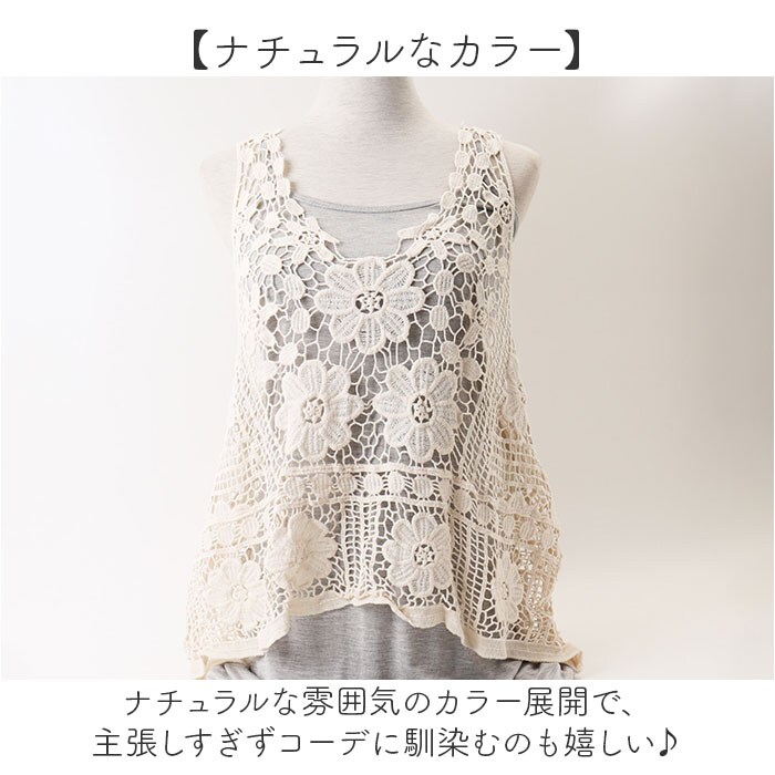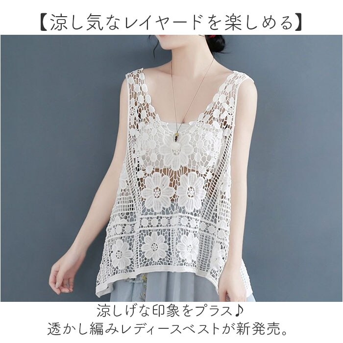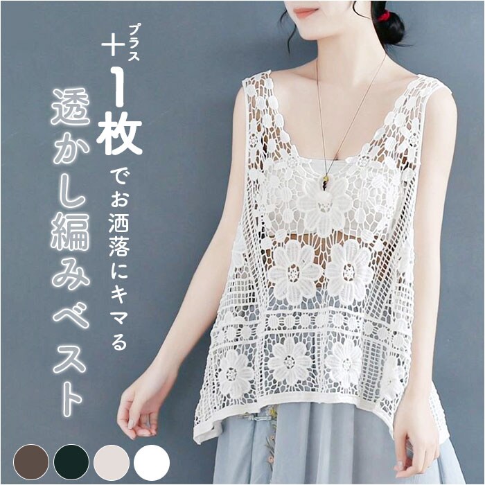 | 商品説明 | 【涼し気なレイヤードを楽しめる】涼しげな印象をプラス♪透かし編みレディースベストが新発売。【お花の刺繍もポイント】透かし編みの中に可愛らしいお花の刺?もプラス♪華やかなで女性らしさもあるベスト。【春夏コーデのアクセントに】いつものコーデにプラスワン♪簡単に春夏コーデがオシャレに映える☆【キャミやタンクと合わせても】キャミソールやタンクトップを合わせて肌魅せと、レース地の透け感でより涼し気な見た目に。【お腹やお尻周りを隠せる】ゆったりとした作りとお尻の下まで着丈があるので、ボディラインを拾わず気になる所も隠せる【ナチュラルなカラー】ナチュラルな雰囲気のカラー展開で、主張しすぎずコーデに馴染むのも嬉しい♪ |