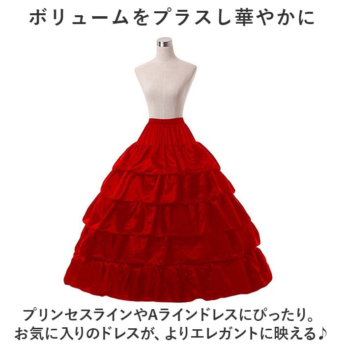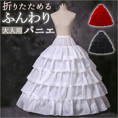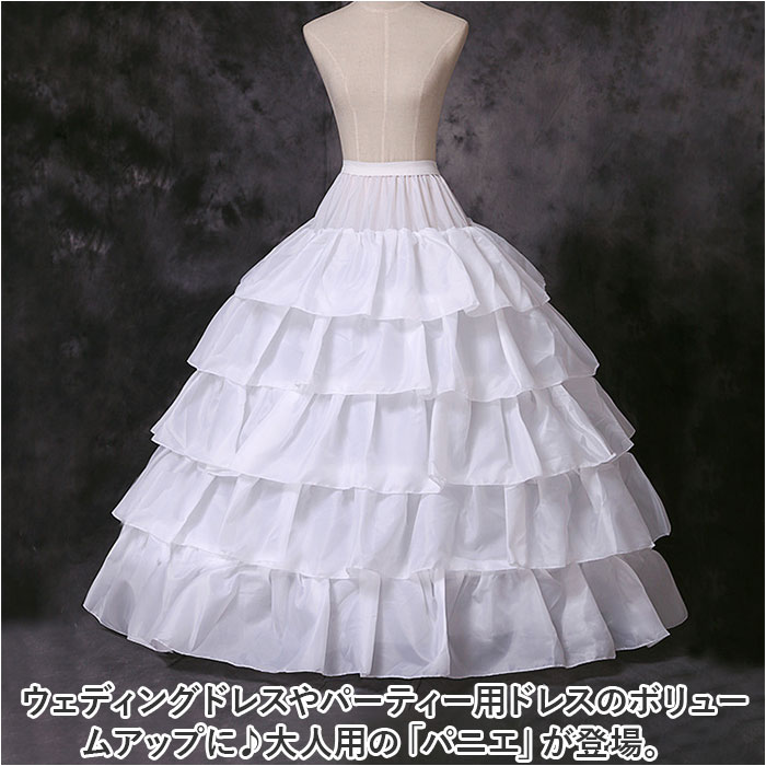 | 商品説明 | ウェディングドレスやパーティー用ドレスのボリュームアップに♪大人用の「パニエ」が登場。【ふんわりシルエットをキープ】ハリのあるフリル生地にワイヤーをプラスし、立体感が生まれるパニエ。美しいフォルムをキープし、足の動きも軽やかに。【締め付けずに心地よくフィット】着脱しやすく負担のかからない、ウエストゴム&面ファスナー仕様。紐をキュッと絞って、自分サイズに調節可能。【折りたたんで持ち運びもスマート】くるっとひねってひとまとめ。スリムな状態で持ち運べるのが嬉しい!【ボリュームをプラスし華やかに】プリンセスラインやAラインドレスにぴったり。お気に入りのドレスが、よりエレガントに映える♪ |