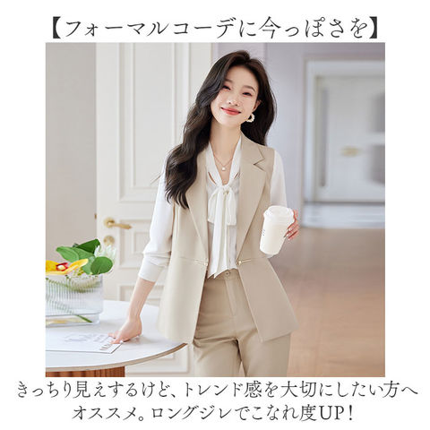 | 商品説明 | 【今っぽいフォーマルスタイルが完成】着回し力抜群な使えるジレ。「スーツロングベスト フォーマル」が登場。【フォーマルコーデに今っぽさを】きっちり見えするけど、トレンド感を大切にしたい方へオススメ。ロングジレでこなれ度UP!【さりげなく体型カバーができる】気になる腰まわりをカバーしてくれるジレ。スリムなシルエットでスラっと細見えが叶う♪【カジュアルダウンするのもGOOD】休日コーデにカジュアルダウンして着こなすのも◎Tシャツやワンピなどにプラスして。【便利なポケットつき】】スマホやタオルなどの小物をサッと入れられる、ポケットを搭載。お出かけ先でもスムーズ!※他ページにて、パンツスタイルの上下セットの販売もあります! |