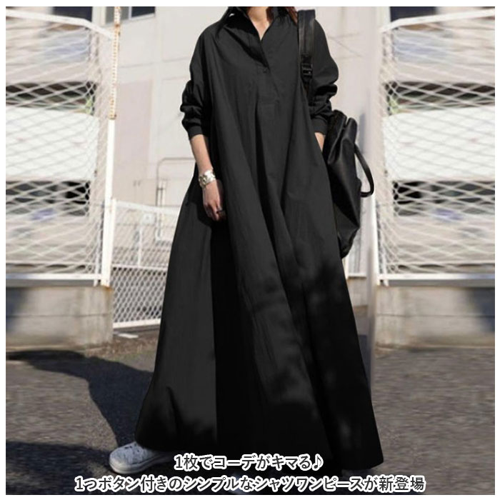 | 商品説明 | ・1枚でコーデがキマる♪1つボタン付きのシンプルなシャツワンピースが新登場。【着心地軽やか】サラッとした手触りのコットン混紡素材。ややハリがあり、きちんと感をプラス。【ゆったりシルエット】締めつけ感がなくストレスフリー◎身体のラインをふんわりカバーできるのも嬉しいポイント。【ふんわりたっぷり広がる♪】裾にかけて広がるドレープデザイン。【レイヤードコーデも】足元を上手にカバーできるロング丈。お気に入りのボトムスと組み合わせてもOK。【スマホなどをサッと入れておける!】左右に便利なポケットを配置。【長く着られる!】年代問わず着用しやすい、シンプルな無地デザイン。 |