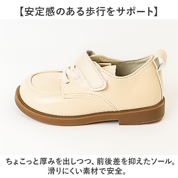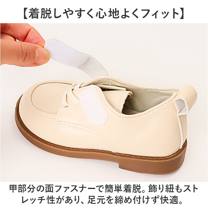 | 商品説明 | 【マルチに活躍◎シンプルデザイン】・1足持っていれば、ヘビロテ確定☆色んなシーンで使える「キッズフォーマルシューズ」。【着脱しやすく心地よくフィット】甲部分の面ファスナーで簡単着脱。飾り紐もストレッチ性があり、足元を締め付けず快適。【屈曲性があり、歩きやすさが向上】つま先部分は、足の動きに合わせて柔軟に曲がる形状。蹴り上げやすくつまずきにくい!【インソールが足にかかる負担を軽減】ソフトなインソールが、足裏を優しく受け止める!長時間歩いても疲れにくいのが嬉しい◎【安定感のある歩行をサポート】ちょこっと厚みを出しつつ、前後差を抑えたソール。滑りにくい素材で安全。【本革のような面倒なお手入れは不要】傷や汚れに強いPU素材。お手入れも拭き取るだけなので、気軽に履けるフォーマルシューズ。【特別な日の1足にぴったり】フォーマルコーデに合わせやすい、落ち着きのある仕上がり。イベントやお呼ばれシーンに。 |