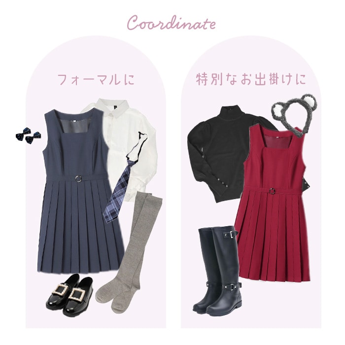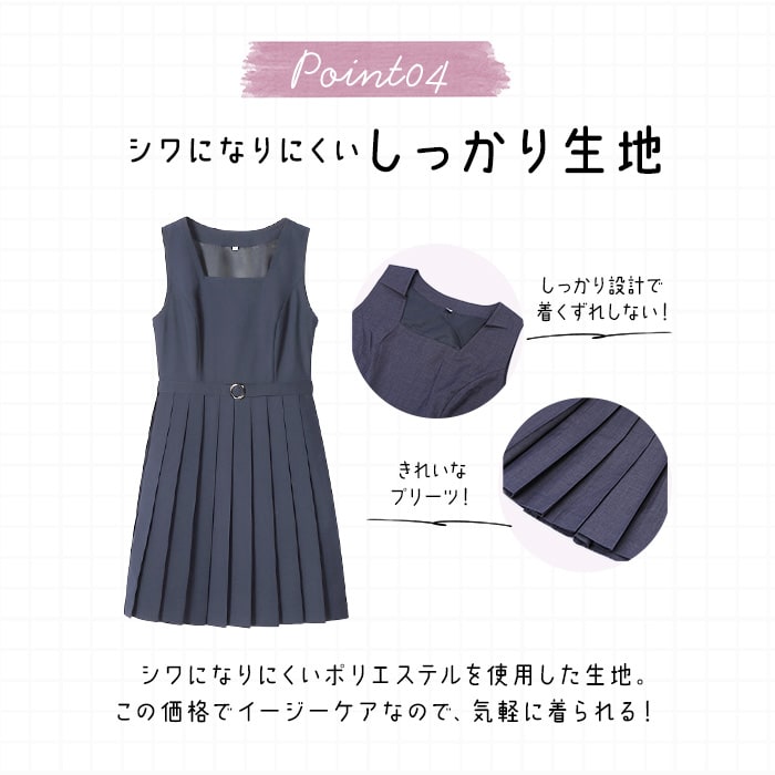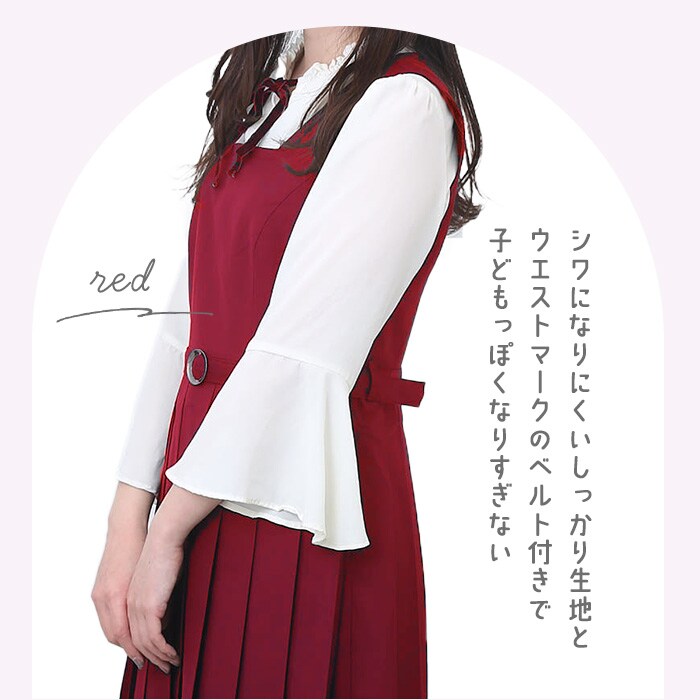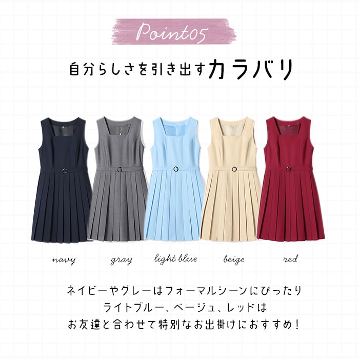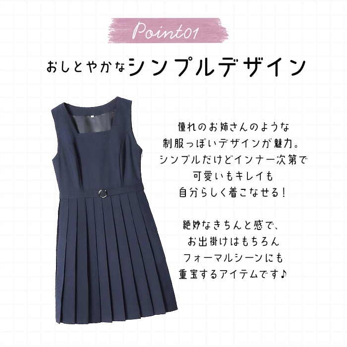 | 商品説明 | フォーマルシーンにも使える☆ ジャンパースカート が登場。【シンプルデザイン】ちょっと制服っぽい、だけどちゃんと今っぽいおしゃれさが魅力。おしゃれしたいお出かけや、卒業式などのフォーマルな場面での着用にぴったり!【ベルトつき】子供っぽい印象にならないよう、ワンカラーのベルトをON。ハイウエスト部分でウエストマークしてくれるので、スタイルアップ効果も◎【上品なプリーツスカート】スカートは上品なプリーツスカート。キッチリ感を高めてくれ、歩くたびにキレイに揺れる♪オトナっぽさとかわいらしさを両立☆【サイドファスナー】ファスナーをサイドに設置。自分で着やすく、脱ぎやすい。朝のお支度もスムーズ!【裏地つき】スカートの裏には裏地があるので、タイツなどと合わせても静電気が起きにくい◎しっかりした作りなのも嬉しいポイント。【イージーケア】シワになりにくいポリエステルを使用した生地。イージーケアなので、気軽に着られる♪【選べるカラー】ベーシックカラーから、華やかなカラーまで幅広いカラーバリエーション。色によって雰囲気がガラッと変わる☆お気に入りをチョイス! |