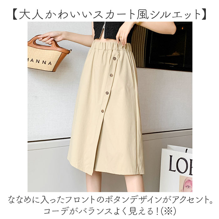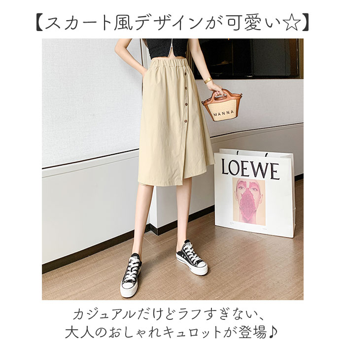 | 商品説明 | 【スカート風デザインが可愛い☆】カジュアルだけどラフすぎない、大人のおしゃれキュロットが登場♪【スッキリ見えるシルエット】ななめに入ったフロントのボタンがアクセント。コーデがバランスよく見える!(※)フロントのボタンはデザインです。【ゆるっとかわいいAライン】膝丈のゆったりAラインシルエットで、脚がスラっと見えスタイルアップ効果も◎【ストレスフリーな着用感】ウエスト部分はゴムを使用しているので、締め付け感なし!【サラっと軽い着心地】ストレッチ性のある生地で、動きやすさもプラス。おしゃれなだけじゃない、着心地も魅力。【便利なポケット】両サイドにはスマホなどをサッと入れられるポケットを配置。【お気に入りをチョイス】シンプルな無地のワンカラー。コーデや気分に合わせて選びやすいベーシックカラーのラインナップ。 |