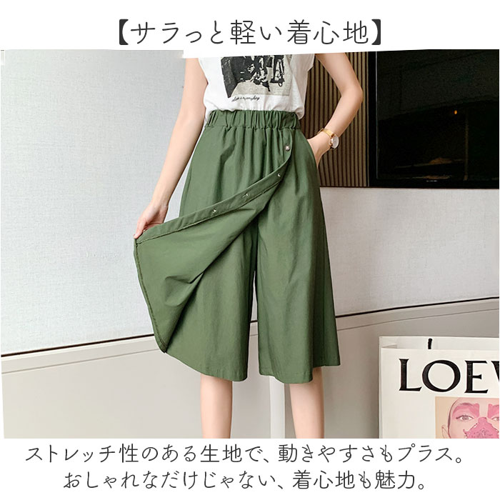 レディース パンツ キュロット【アーミーグリーン】【フリーサイズ(L)】