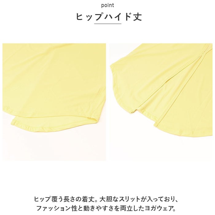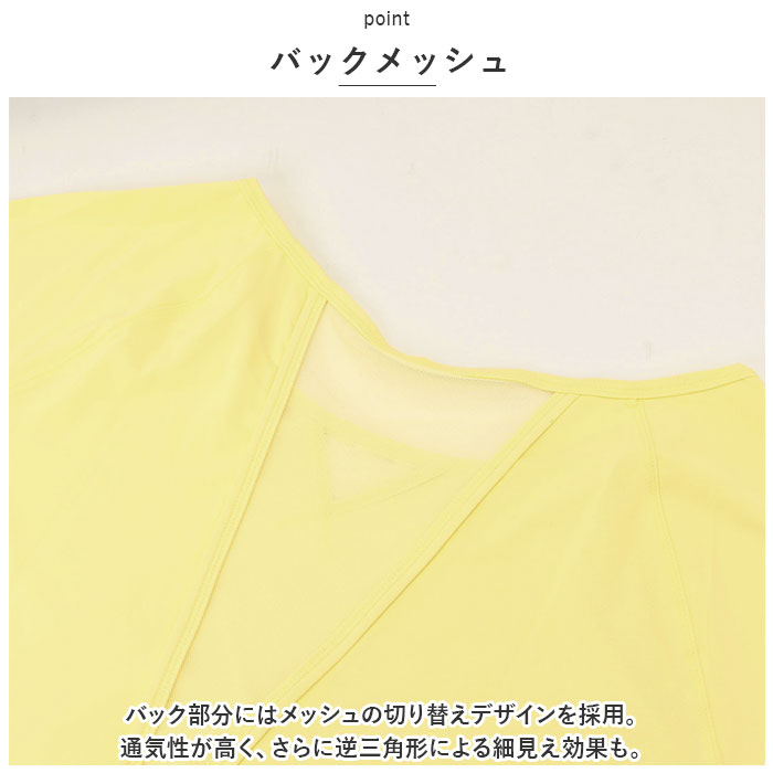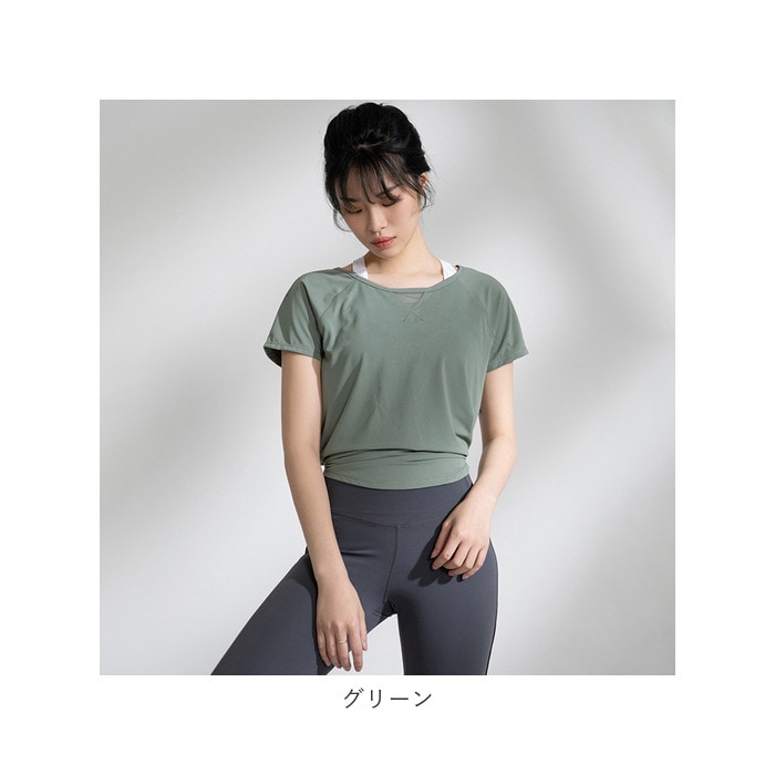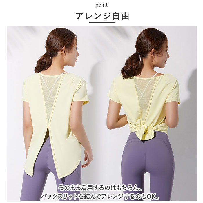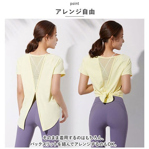 | 商品説明 | ヨガやフィットネスでのトレーニングなどで活躍する半袖タイプのヨガウェア。【軽い着心地】吸汗・速乾性に優れた生地を採用しており、サラッとした軽い着心地。【程よいストレッチ性とフィット感】程よいフィット感があり、大きく体を動かすときもストレッチ性があるので動きやすい。【ラウンドネック】首回りがスッキリ見えるラウンドネックのデザイン。【バックメッシュ】バック部分にはメッシュの切り替えデザインを採用。通気性が高く、さらに逆三角形による細見え効果も。【アレンジ自由】そのまま着用するのはもちろん、バックスリットを結んでアレンジするのもOK。【ヒップハイド丈】ヒップ覆う長さの着丈。大胆なスリットが入っており、ファッション性と動きやすさを両立したヨガウェア。 |