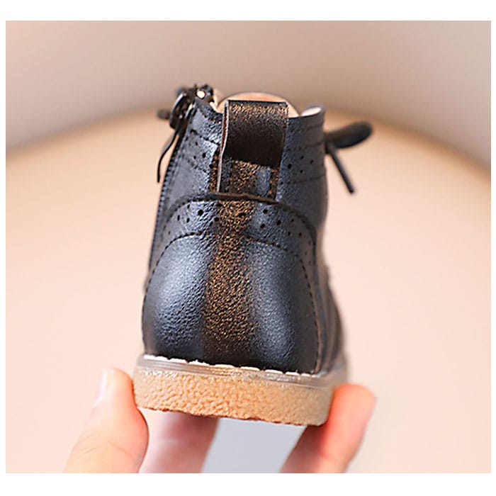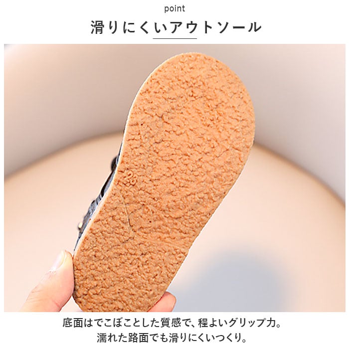| 商品説明 | 足元もおしゃれに♪カジュアルにもフォーマルにもキマる、キッズ用ショートブーツが新登場。【スタイリッシュなデザイン】手触りなめらかなPU素材に、落ち着きのあるカラーリング。適度なステッチデザインがアクセントになり、大人な雰囲気に仕上げたブーツ。【歩きやすいつくり】肌に馴染みやすい柔らかさで屈曲性もあり、足が痛くなりにくい!つま先が上を向いたトゥスプリング設計でつまづきにくく、蹴り上げやすいのもポイント。【履きやすいショート丈】お子さまの動きを妨げることなく、足元に存在感をプラス。【足入れがスムーズ】脱ぎ履きしやすいサイドファスナー式。履き口を広げて、スッと足入れできちゃう!かかとにはプルタブ付き。【滑りにくいアウトソール】底面はでこぼことした質感で、程よいグリップ力。濡れた路面でも滑りにくいつくり。【1足持っていると便利】デニムなどカジュアルなコーデに合わせるも良し、ちょっとおめかししたお出かけにも!色んなスタイルに素敵にマッチ☆ |