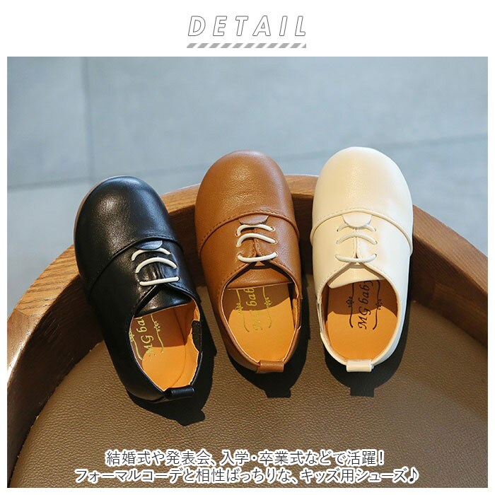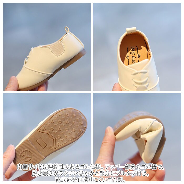 | 商品説明 | 結婚式や発表会、入学・卒業式などで活躍!フォーマルコーデと相性ばっちりな、キッズ用シューズ♪靴紐を結ぶ手間なく履けるスリッポンタイプ。柔らかく滑らかな生地感の合皮素材を採用。締めつけ感なく履けるのが嬉しいポイント。内側サイドは伸縮性のあるゴム仕様。アッパー部分もゴム紐で、脱ぎ履きがラクチン◎かかと部分にプルタブ付き。靴底部分は滑りにくいゴム製。かっちりしすぎないデザインなので、デイリー使いもOK。兄弟・姉妹お揃いで履ける10サイズ展開! |