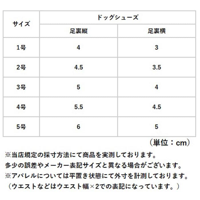 | サイズ | [ドッグ] ・1号 ・2号 ・3号 ・4号 ・5号 ※サイズにつきましては靴のタグについている表記と異なる場合がございます。 ※内寸を計測した商品ページのサイズが正しいサイズとなりますので予めご了承ください。 |