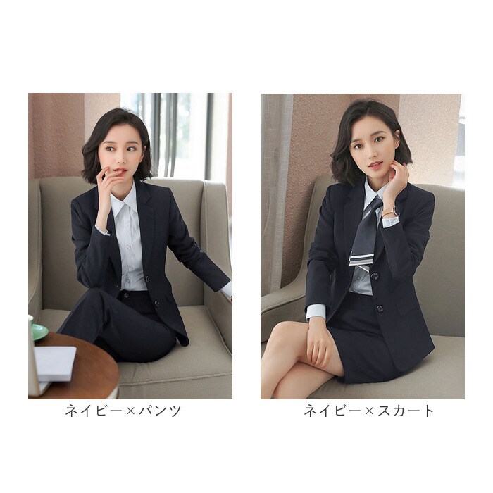 レディーススーツ 2セット pkyana8219【ネイビー×スカート】【XL】