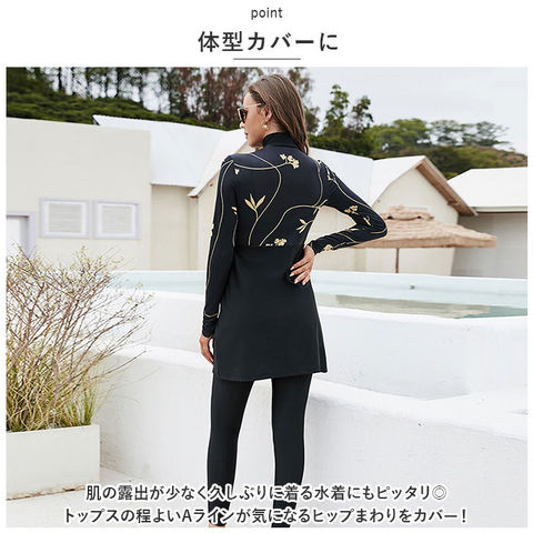 | 商品説明 | 大人可愛く着こなせるレディース水着が新登場♪【しっかり日よけ】長袖とロングパンツがセットの水着◎プールやマリンスポーツを楽しみながらしっかり日差しカット!【大人カワイイデザイン】シンプルで派手過ぎないエスニック柄が特徴♪年代問わずスマートに着こなせるのもポイント。【ハーフジップ】トップスは背面にハーフジップを搭載し着替えやすい♪濡れても着脱が楽チン。【体型カバーに】肌の露出が少なく久しぶりに着る水着にもピッタリ◎トップスの程よいAラインが気になるシルエットラインとヒップまわりをカバー! |