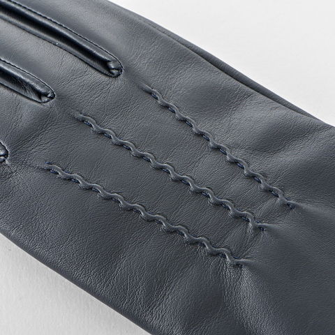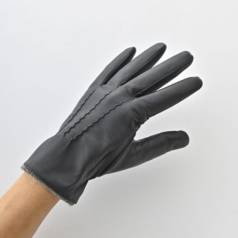 | 商品説明 | 「糸絞り」と呼ぶ3本の立体的なウェーブの飾りが特徴のベーシックなレザーグローブ。親指と人差し指にはタッチパネル操作可能な導電革を、インナーにはカシミヤ・ウールを使用。2サイズ展開。 |