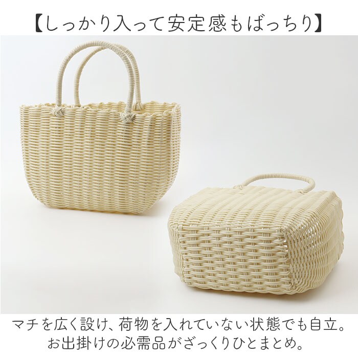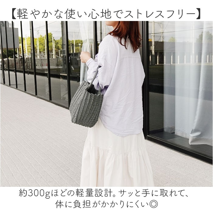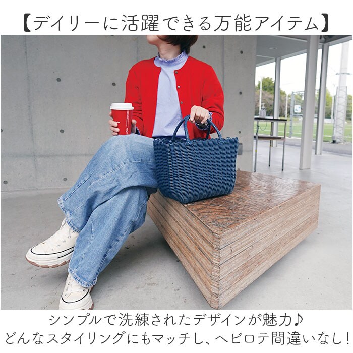 | 商品説明 | 【色んなシーンで使えて便利】収納力もあり、使い勝手抜群◎ラフに持ち出せる「Plastic Luxe かごバッグ」。【手作業のナチュラルな風合い】ポリエチレン素材のチューブを使い、職人が1つ1つ丁寧に編み上げたかごバッグ。(※)手作業で編んでいるため、個体によってサイズや風合いなどに若干の差異が生じます。【軽やかな使い心地でストレスフリー】約300gほどの軽量設計。サッと手に取れて、体に負担がかかりにくい◎【しっかり入って安定感もばっちり】マチを広く設け、荷物を入れていない状態でも自立。お出掛けの必需品がざっくりひとまとめ。【ピクニックなどアウトドアシーンで】水濡れにも強く、お弁当などを入れるバッグとしても重宝。オールシーズン使えて便利。【デイリーに活躍できる万能アイテム】シンプルで洗練されたデザインが魅力♪どんなスタイリングにもマッチし、ヘビロテ間違いなし!【お好みでアレンジも楽しめる】お手持ちのスカーフやバンダナ、チャームなどをプラスしてもおしゃれ♪ |