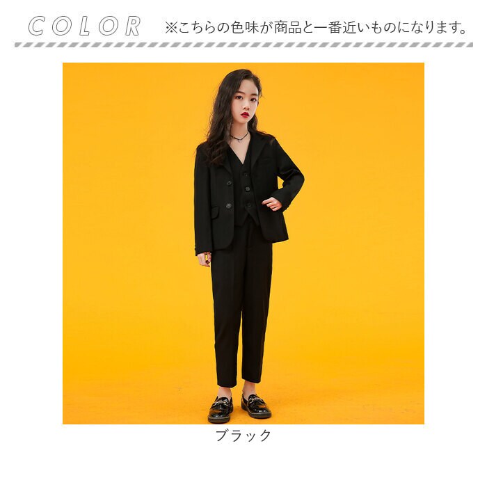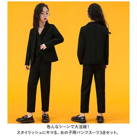 発表会 パンツスーツ 女の子 3点セット pmusuit3【ブラック】【160cm】