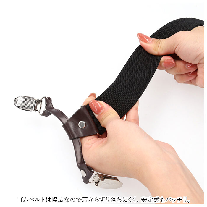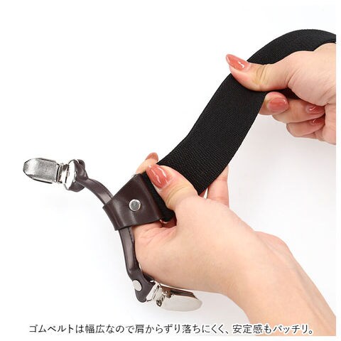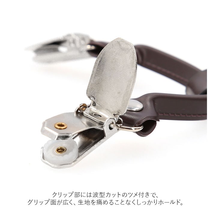 | 商品説明 | ダブルのクリップでズボンをしっかりホールド!「メンズ用 Y型6クリップサスペンダー」が登場。スーツスタイルはもちろん、カジュアルスタイルのアクセントとしても人気♪2つのクリップがしっかりズボンを挟み込む、ダブルクリップ式。スボンがずり落ちることなく快適装着◎クリップ部には波型カットのツメ付きで、グリップ面が広く、生地を痛めることなくしっかりホールド。左右についたアジャスターで装着したまま簡単に長さの調整ができる。ゴムベルトは幅広なので肩からずり落ちにくく、安定感もバッチリ。無地からチェック、水玉模様まで、タイプも色々、豊富なバリエーション。BOX入りなので、ギフトにもオススメ。 |