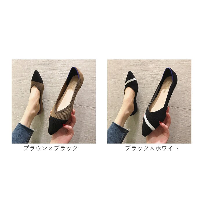 パンプス ニット フラット pmy012【ブラウン×ブラック】【37(23.5cm)】