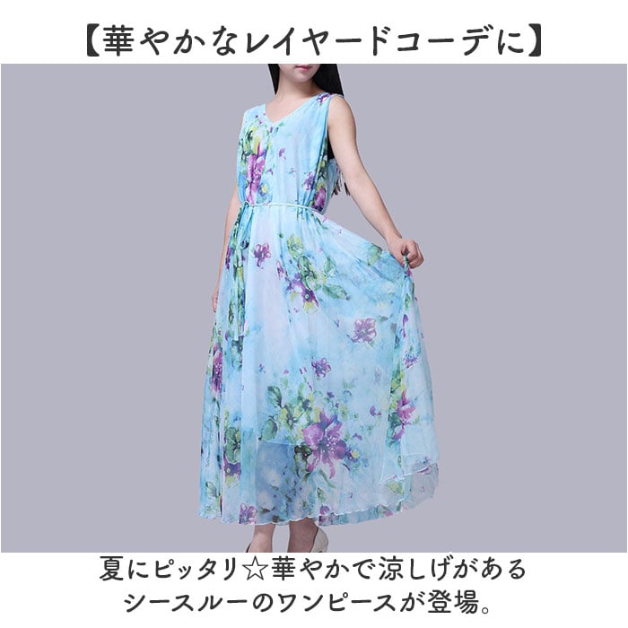 | 商品説明 | 【華やかなレイヤードコーデに】夏にピッタリ☆華やかで涼しげがあるシースルーのワンピースが登場。【大胆な花柄がポイント】各カラーに合わせた花柄デザイン。どのカラーも大きな花柄デザインが大胆でキュート♪※【涼し気に彩るシフォン素材】シースルーとふんわり広がるシフォン生地で夏にピッタリな素材感。【アレンジ色々】付属のリボンやお手持ちのベルトでウエストマークなど、多彩なアレンジが出来るのも嬉しいポイント【夏にレイヤードを楽める】お手持ちのキャミソールワンピやペチコートと組み合わせて様々なコーデを楽しめる。【注意事項】※カラーにより花の種類やデザインパターンが異なります |