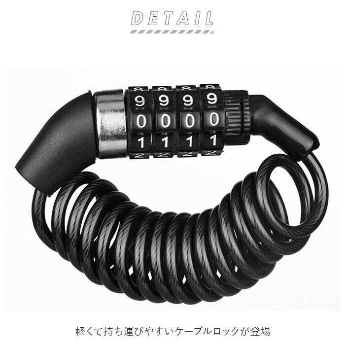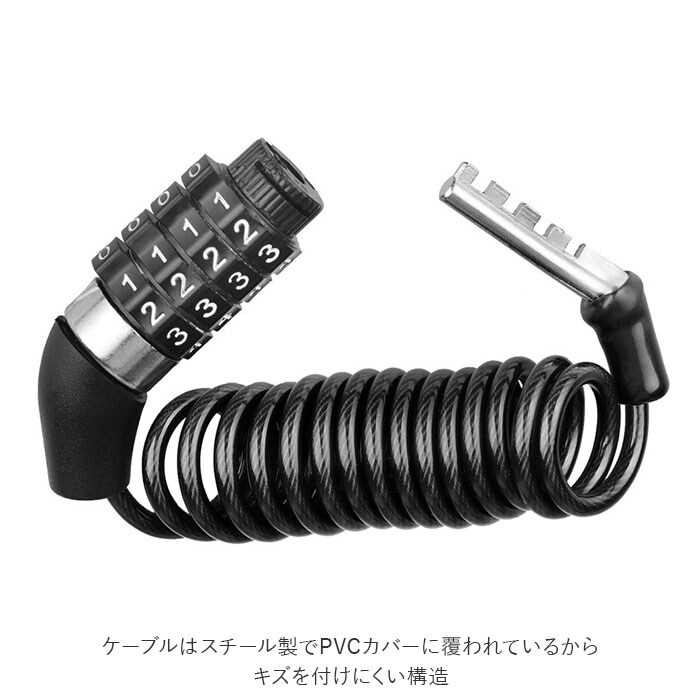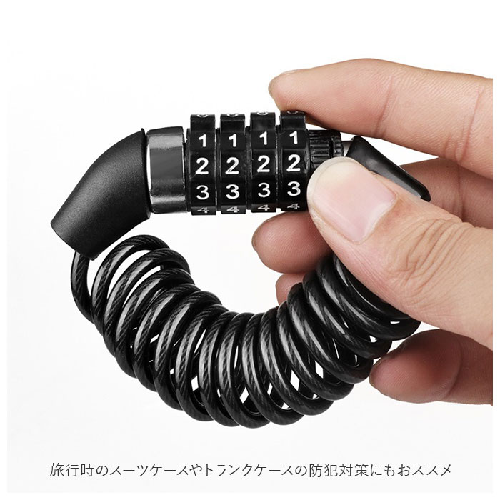 | 商品説明 | 軽くて持ち運びやすいケーブルロックが登場最大約100cmまで伸縮し、自転車本体にはもちろん、自転車・バイク用ヘルメットの盗難対策にも役立つ。4ケタの好きな数字がカギになるダイヤルロック式♪(番号を忘れないように写真を撮ったりメモしてください。)スチール製のケーブルはPVCカバーに覆われているので、自転車のボディにキズを付けにくい構造。旅行時のスーツケースやトランクケースの防犯対策にもおススメ。 |