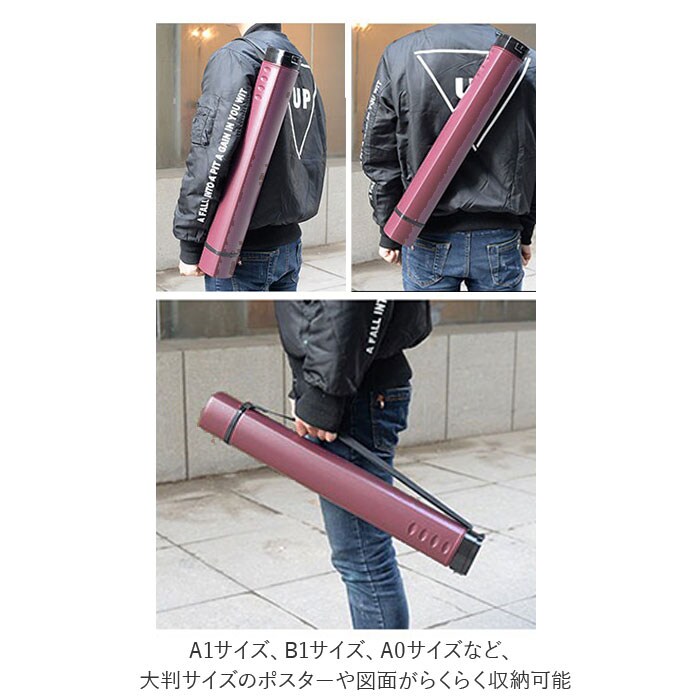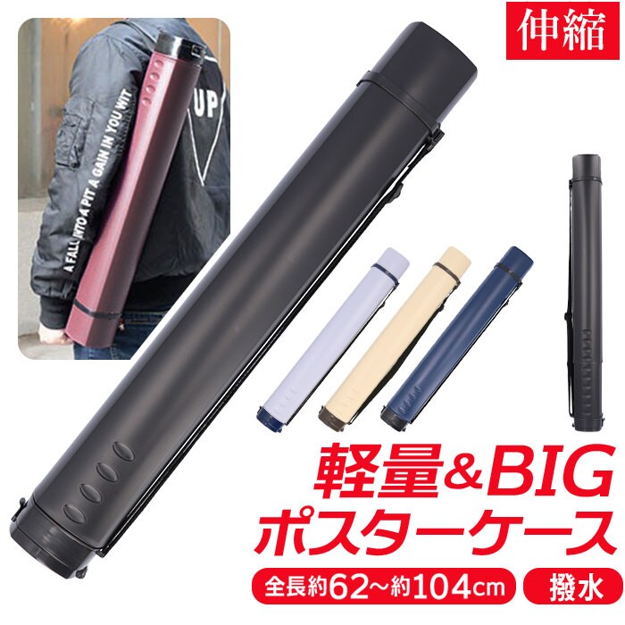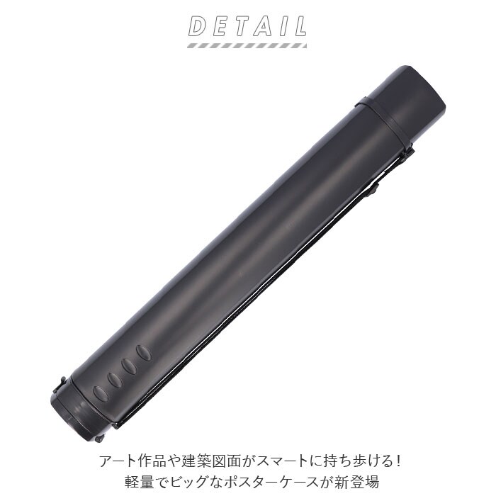 | 商品説明 | アート作品や建築図面がスマートに持ち歩ける!軽量でビッグなポスターケースが新登場。全長約62cmから最大約104cmまで、ケースの長さ調節が自在にできる「アジャスター式ケース」を採用。A1サイズ、B1サイズ、A0サイズなど、大判サイズのポスターや図面がらくらく収納可能。ワンタッチで開閉がスムーズにできるキャップ部分は、ケース本体一体型。キャップをいつの間にか紛失する心配がなく、収納した作品をしっかりと保護。キャップトップは透明ケース仕様になっているので、内側のメモカードに収納物の内容を書き込むことができ、作品の管理がグッと楽に。肩に掛けてスマートに持ち運べる、ショルダーストラップ付き。撥水性に優れたプラスチック製で、雨の日も作品を水濡れからしっかりとガード。プレゼン資料や図面の持ち運びにはもちろん、お子さまの絵画作品や賞状、推しアイドルのポスターの保管まで、様々な用途に大活躍。 |