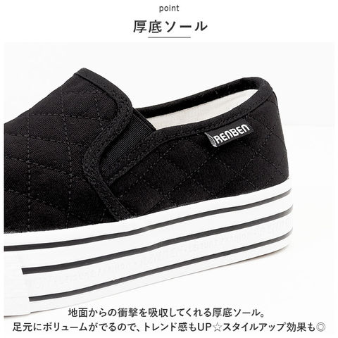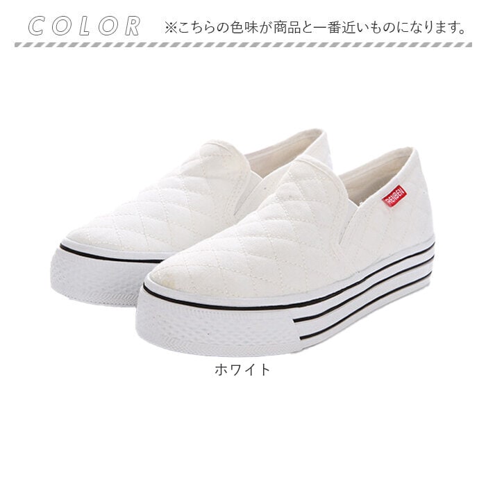 | 商品説明 | 定番だけど今っぽい♪キルティング×厚底でオシャレな レディースシューズ が登場!【スリッポンタイプ】ゴムを使用した履き口で、スムーズな着脱ができる。紐レスのスリッポンタイプなので、靴紐の結び直しが不要◎手間いらず!【キルティング仕様】キルティング仕様の生地。シンプルだけどこなれた印象に。定番のスリッポンだけど今っぽい仕上り。【厚底ソール】地面からの衝撃を吸収してくれる厚底ソール。足元にボリュームがでるので、トレンド感もUP☆スタイルアップ効果も◎【歩きやすい】厚底だけどフラットな仕様なので、歩きやすい!ヒールが苦手な方でも安心。【滑り止めつき】靴底には滑り止め加工を施し、雨の日の濡れた地面もしっとりとグリップ◎【様々なシーンで】歩きやすいので、通学や通勤など普段使いに最適!シンプルなのでコーデにプラスしやすく、毎日履きたくなる♪【選べるカラー】配色を抑えたカラー仕様。お好みのカラーをチョイス♪ |