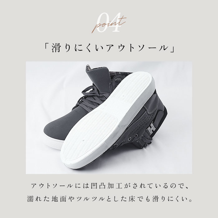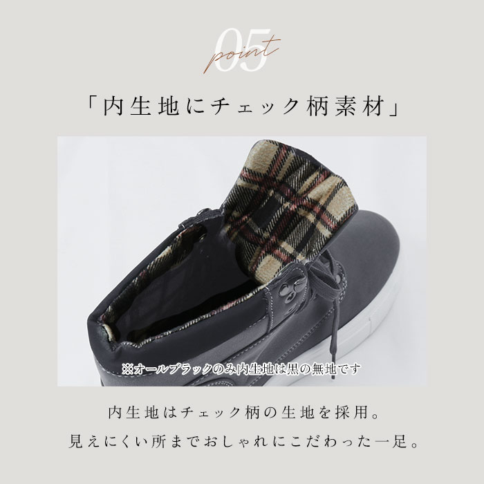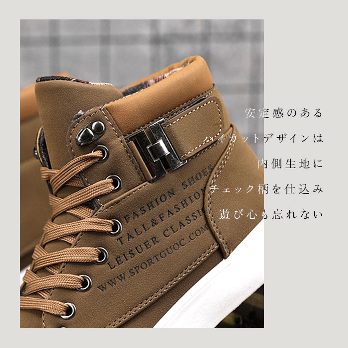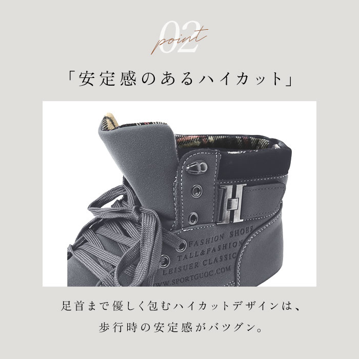 | 商品説明 | カジュアルシーンにおススメ♪メンズハイカットスニーカーが発売♪【おしゃれなデザイン】マット調の合皮レザーがシンプルながらナチュラル感たっぷり◎内側のチェック生地とサイドベルト、英字ロゴがアクセントに。【屈伸性アリ】ボリューミーな見た目ながらアッパーとソールは柔らかい素材でできており、屈曲性アリ!長時間履きまわしても足が痛くなりにくいのもポイント。【撥水加工】表面生地は撥水加工がされており、ちょっとした雨や汚れが付いても安心♪(※完全防水ではございません。ご注意くださいませ。)【滑りにくい】アウトソールには凹凸加工がされているので、雨に濡れた地面やツルツルとした床でも滑りにくい安心仕様。 |