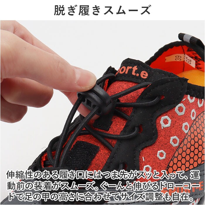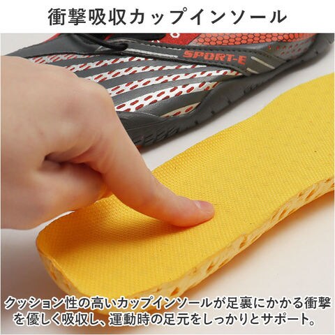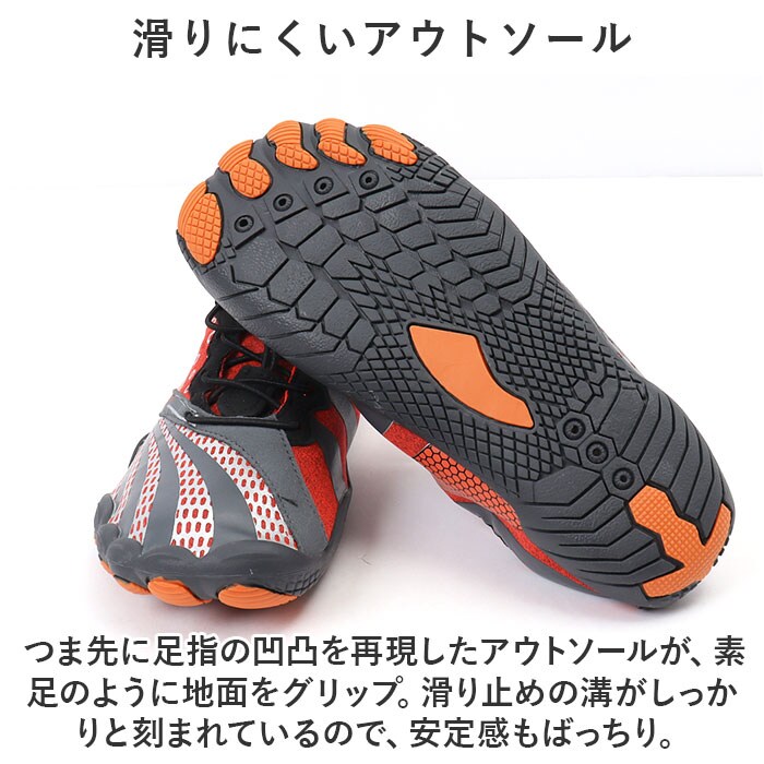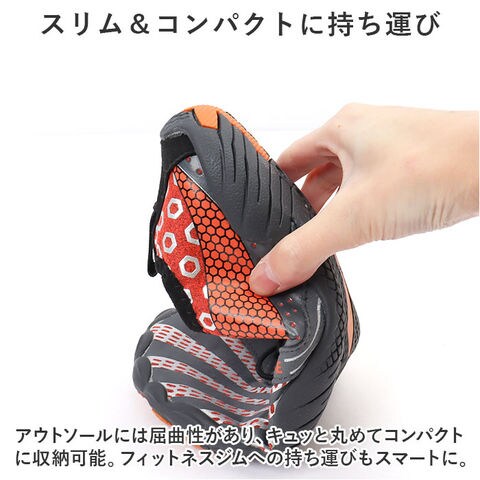 | 商品説明 | まるで素足のように軽くて快適!フィットネスやマリンスポーツで活躍する「トレーニングシューズ(水陸両用タイプ)」が新登場。【ふわっと軽快な履き心地】片足約150gの軽量設計(※1)。履いていることを忘れてしまうほどの軽い履き心地で、軽快なフットワークを実現。【快適ソフトなストレッチ生地】伸縮性抜群のストレッチ生地が、つま先からかかとまで足の動きに合わせてピタッとフィット!素足のまま履いても、快適ソフトな肌あたり。【通気性抜群のスポンジメッシュ】アッパー生地は、ソフトな感触と通気性を両立したスポンジメッシュ仕上げなので、真夏やスポーツ時の気になるムレ対策も万全。【衝撃吸収カップインソール】クッション性の高いカップインソールが足裏にかかる衝撃を優しく吸収し、運動時の足元をしっかりとサポート。【脱ぎ履きスムーズ】伸縮性のある履き口にはつま先がスッと入って、運動前の装着がスムーズ。ぐーんと伸びるドローコードで足の甲の高さに合わせてサイズ調整も自在。【水中・陸上でマルチに活躍】水の中にシューズのまま入っても、スポンジメッシュが水を通し、ソールの排水孔からも水が抜けるため、早く乾いて快適さをキープ。【滑りにくいアウトソール】つま先に足指の凹凸を再現したアウトソールが、素足のように地面をグリップ。滑り止めの溝がしっかりと刻まれているので、安定感もばっちり。【スリム&コンパクトに持ち運び】アウトソールには屈曲性があり、キュッと丸めてコンパクトに収納可能。フィットネスジムへの持ち運びもスマートに。【お手入れ簡単、いつでも清潔】カップインソールは取り外しができるので、手軽に水洗いができていつでも清潔さをキープ。【スポーツやアウトドアに最適】ジムでのトレーニングやランニングなどのフィットネスにはもちろん、サーフィンのような水辺のアクティビティーではマリンシューズとして大活躍。 |