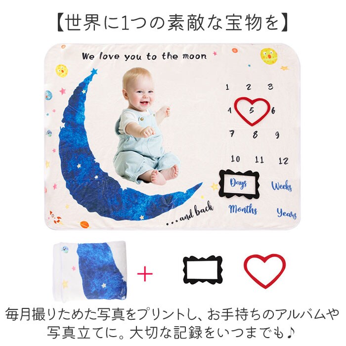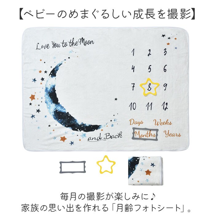 | 商品説明 | 【ベビーのめまぐるしい成長を撮影】毎月の撮影が楽しみに♪家族の思い出を作れる「月齢フォトシート」。【手軽に自宅フォトスタジオが完成】シートを広げるだけで、自宅にフォトスポットが出現!月齢フォトやお昼寝アートを楽しめる☆【お子さまの月齢と成長を可愛く記録】毛布のようなシートに12の数字と、月齢単位の英字を。付属のフェルトで囲んで撮影!(※)フェルトのモチーフやプリントされた月齢単位は、カラーにより異なります。【デリケート肌にも優しい生地感】柔らかく滑らかなフランネル素材。ふわりと軽やかで、ベビーのお肌に触れても安心。【世界に1つの素敵な宝物を】毎月撮りためた写真をプリントし、お手持ちのアルバムや写真立てに。大切な記録をいつまでも♪【月齢の近いお友達と一緒に】折りたたんで、コンパクトに持ち運びOK。お友達と仲良く撮影するのもおすすめ。【ブランケットとしても活用OK】写真撮影グッズとしてはもちろん。ブランケット使いもできる万能アイテム。【選ぶのも楽しいラインナップ】ナチュラル可愛い、豊富なバリエーション。温かみのあるデザインが魅力! |