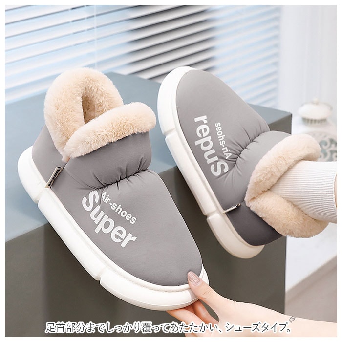 | 商品説明 | もこもこ素材で足元あったか♪寒い季節にぴったりのルームシューズが登場。足首部分までしっかり覆ってあたたかい、シューズタイプ。内側はふんわり優しく包み込んでくれる全面ボア素材!アウトソールはフラットな厚底デザイン。足に負担がかかりにくい軽量設計。くすみのある優しい色合いのカラーバリエーション♪両サイドのロゴデザインがアクセント。 |