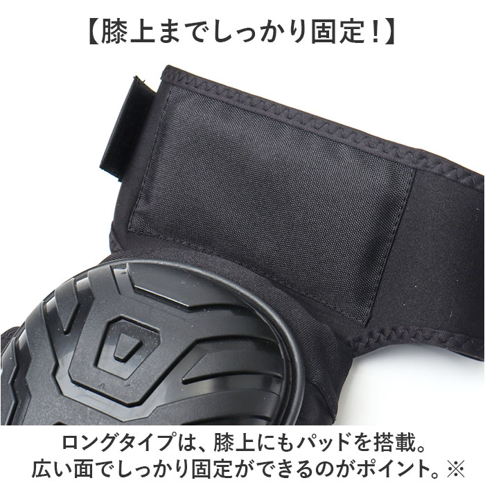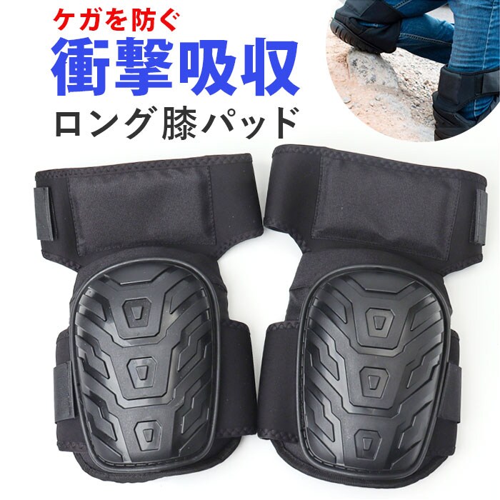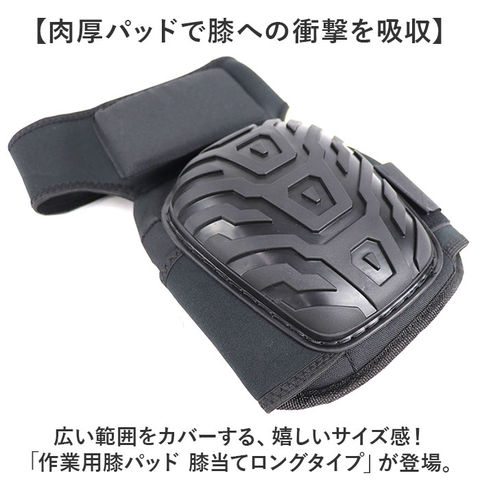 作業用 膝パッド 膝当て 衝撃吸収 ロングタイプ【ブラック】