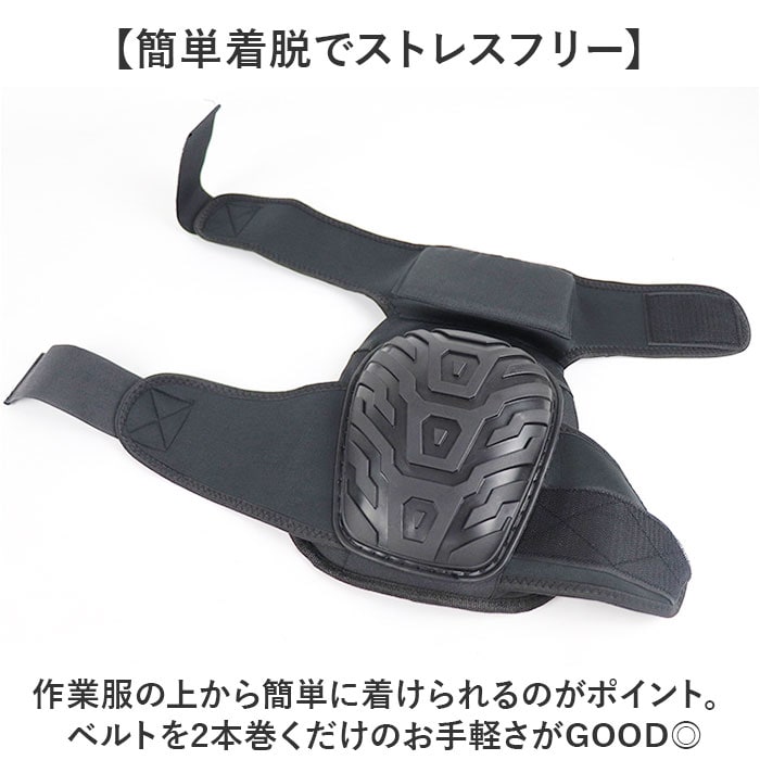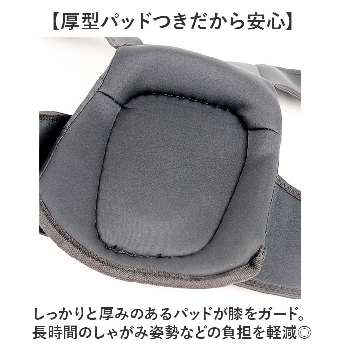 商品説明【肉厚パッドで膝への衝撃を吸収】広い範囲をカバーする、嬉しいサイズ感!「作業用膝パッド 膝当て ロングタイプ」が登場。【厚型パッドつきだから安心】しっかりと厚みのあるパッドが膝をガード。長時間のしゃがみ姿勢などの負担を軽減◎【外側にはハード素材を使用】石やガラスの破片など、硬い物から膝を守りケガを防ぐ!現場作業などで大活躍。【簡単着脱でストレスフリー】作業服の上から簡単に着けられるのがポイント。ベルトを2本巻くだけのお手軽さがGOOD◎【ゴムベルトで動きやすさUP】ベルトはゴム素材&幅広設計なので、しゃがんだり立ったりを繰り返してもズレにくい◎【サイズ調節ができる!】ベルトはサイズ調節ができるタイプなので、服装や体型に合わせてフィット感を調節!【外側は洗ってもOK!】ハード部分は水洗いが可能。土や泥などの汚れがついても清潔さをキープできる◎【膝上までしっかり固定!】ロングタイプは、膝上にもパッドを搭載。広い面でしっかり固定ができるのがポイント。※別ページにてショートタイプを販売中。