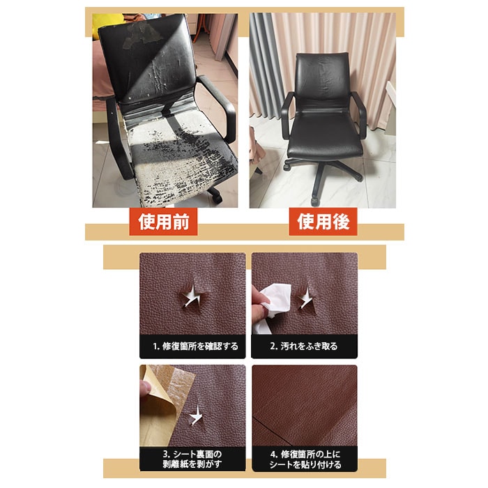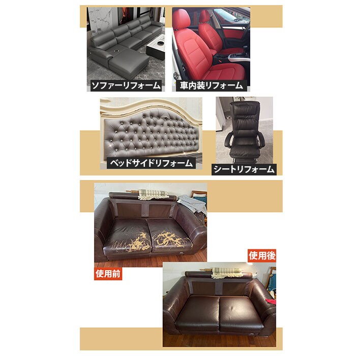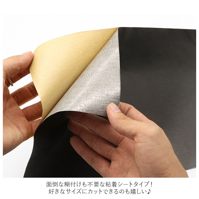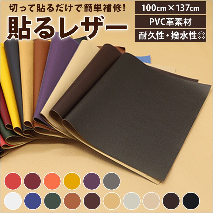 | 商品説明 | 切って貼るだけで簡単補修。貼るレザーが登場。面倒な糊付けも不要な粘着シートタイプ!好きなサイズにカットできるのも嬉しい♪車のシートやバイクシート、ソファの補修だけでなく、DIYした家具や手作りアクセサリーのポイントにもオススメ☆PVC革素材なのでお手入れも簡単。色落ちしにくく、耐久性に優れた素材。はっ水性もあり、水滴や汚れが付いてもサッと拭き取り可能。表面には牛革の様なシボ(自然な模様)が入っていて本格的。 |