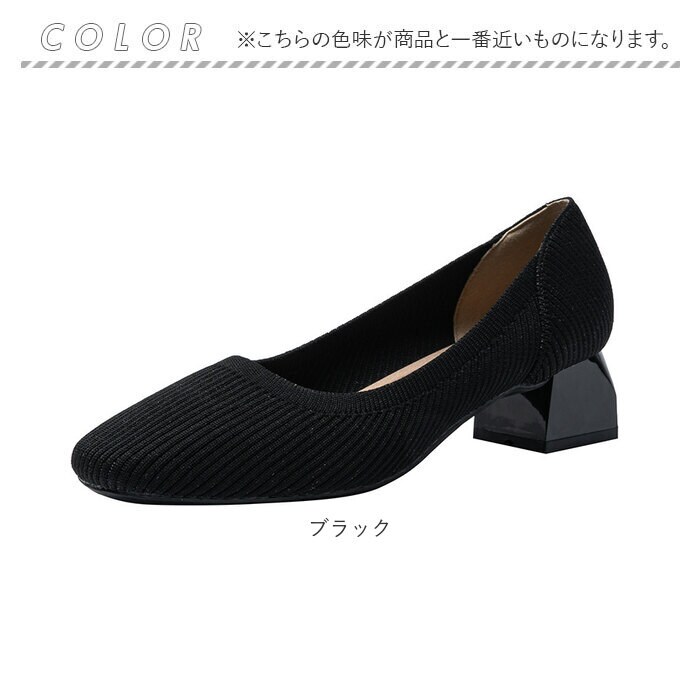 ニット パンプス ローヒール pmy1509【ブラック】【37(23.5cm)】