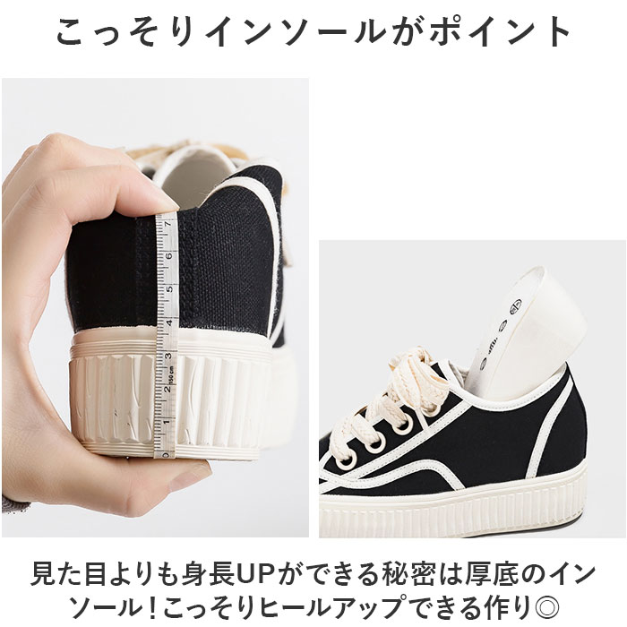 | 商品説明 | インソールとアウトソール、ダブルの厚底でヒールアップ☆!厚底スニーカーが登場。【ダブルの厚底ソールで身長UP☆】厚底仕様のアウトソールは約4センチ、インソールは約3.5センチ!履くだけでグンと身長UP☆【こっそりインソールがポイント】見た目よりも身長UPができる秘密は厚底のインソール!こっそりヒールアップできる作り◎【トレンド感のある足元に】足元にボリュームが出るので、履くだけでトレンド感のある足元が完成する。重ためが今っぽい♪【ベーシックデザインで使いやすい】ベーシックデザインなので、お洋服との相性が良く使いやすい◎オールシーズン使える!【滑りにくい】靴裏には滑りにくいよう加工を施し、歩きやすさに配慮。雨の日でも地面をしっかりグリップ!【幅広いシーン、エイジレスで使える】通勤通学、お休みの日、旅行など幅広いシーンで、エイジレスで使えるひとつは欲しいアイテム☆ |