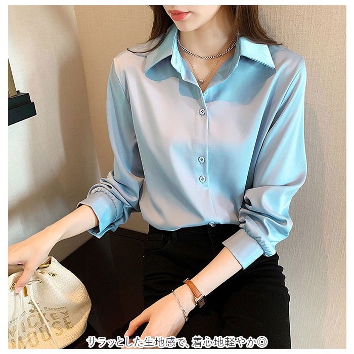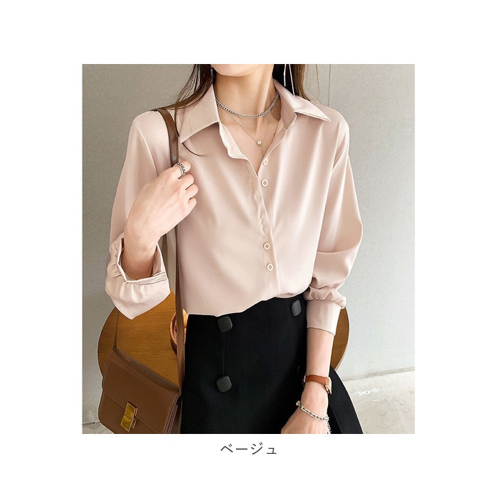 | 商品説明 | 大人な着こなしを楽しめる、長袖ブラウス。サラッとした生地感で、着心地軽やか◎どんなコーデにも合わせやすいシンプルな無地デザイン。ボトムスにインしたり、お手持ちのアイテムとレイヤードするなど自由にアレンジ!襟元のボタンを開けると、こなれ感アップ。普段使いはもちろん、オフィスコーデにも♪ |