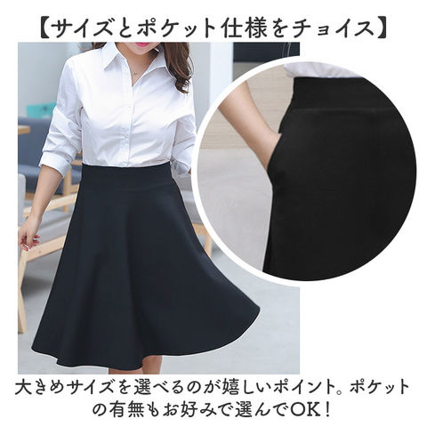 | 商品説明 | 【広がるAラインの美シルエット♪】大きめサイズが嬉しいポイントの、レディーススカートが登場。【上品に仕上がる、フレアスカート】オフィスやフォーマルな場にぴったりな、Aラインのフレアスカート。動く度にふわりと揺れる♪【ウエストゴムでスッキリ見せ】幅広ゴムのウエストは締め付け感が少なく、1日穿いても楽々。INしてもスッキリ見せてくれる【高バランスな膝丈で上品な印象】絶妙な膝丈で上品な印象。いろんなトップスや靴との相性がよく、カジュアルダウンも◎【イージーケアでラクチン】シワになりにくい生地なので、長時間座っていても大丈夫。お洗濯もラクラク!【サイズとポケット仕様をチョイス】大きめサイズを選べるのが嬉しいポイント。ポケットの有無もお好みで選んでOK! |