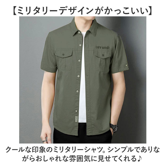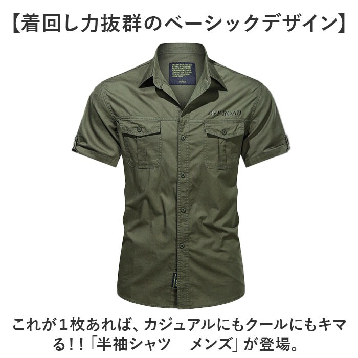 | 商品説明 | 【着回し力抜群のベーシックデザイン】これが1枚あれば、カジュアルにもクールにもキマる!!「半袖シャツ メンズ」が登場。【毎日着られるシンプルさが魅力】ベーシックデザインだからいろんな服と相性抜群!コーデに悩まなくてもこれを着ればキマる◎【ミリタリーデザインがかっこいい】クールな印象のミリタリーシャツ。シンプルでありながらおしゃれな雰囲気に見せてくれる♪【サラっとしたコットン生地】サラっとした肌触りが気持ちいい、コットンを使用した生地。軽い着心地で、暑い季節にも活躍【英字デザインがアクセントに☆】ビンテージ感のある英字ロゴがアクセント!ストリートな着こなしが叶うこだわりのデザイン。【選べるカラーバリエーション】差し色からベーシックデザインまでご用意。お好みのカラーをチョイスできる☆ |