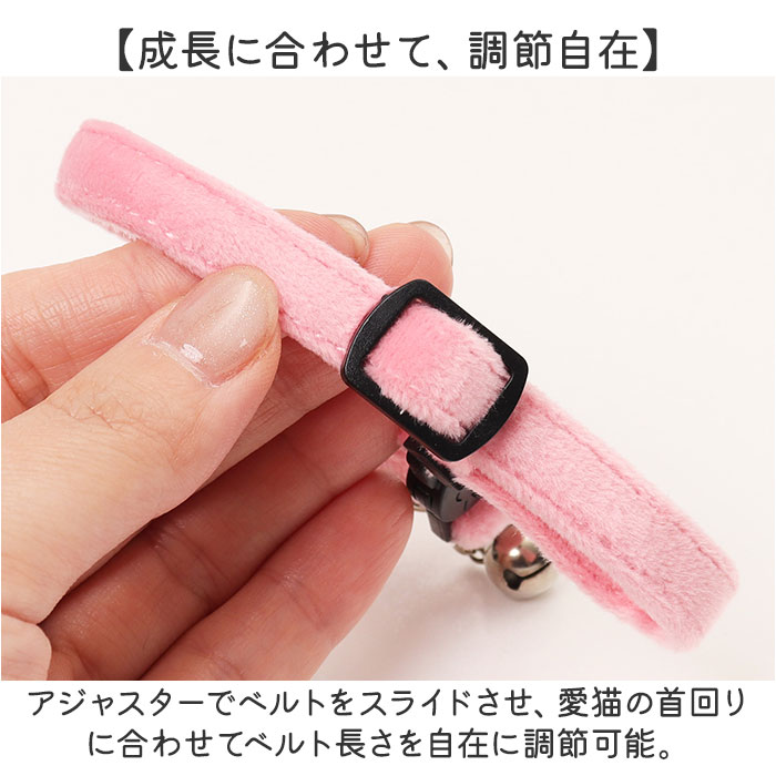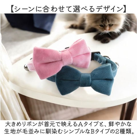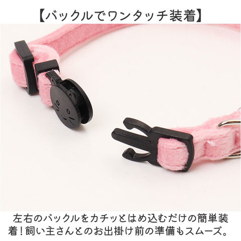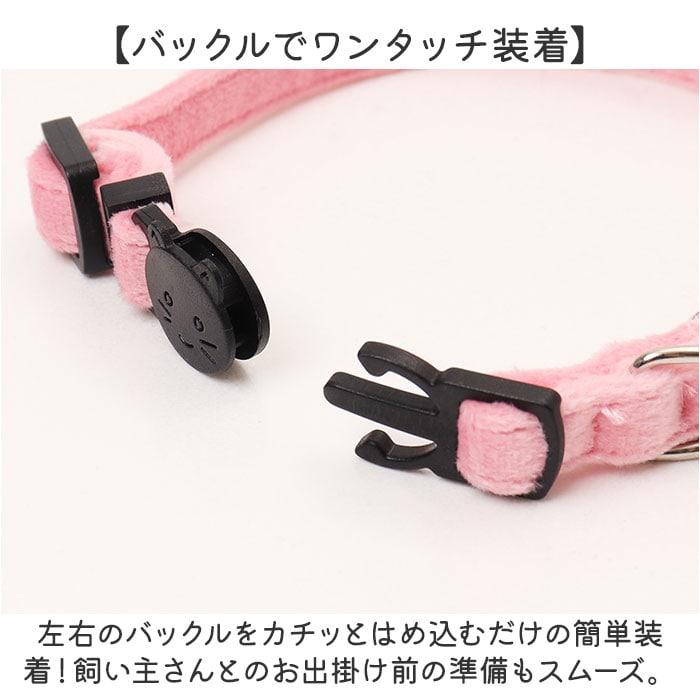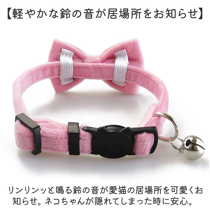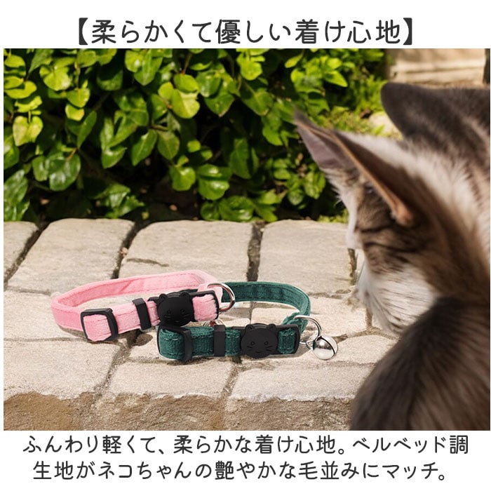 | 商品説明 | 【おしゃまなネコちゃんのアクセント】愛猫の可愛らしさ引き立つ、選べる2つのデザイン。オシャレで安全「キャット用首輪」が新登場。【柔らかくて優しい着け心地】ふんわり軽くて、柔らかな着け心地。ベルベッド調生地がネコちゃんの艶やかな毛並みにマッチ。【成長に合わせて、調節自在】アジャスターでベルトをスライドさせ、愛猫の首回りに合わせてベルト長さを自在に調節可能。【バックルでワンタッチ装着】左右のバックルをカチッとはめ込むだけの簡単装着!飼い主さんとのお出掛け前の準備もスムーズ。【怪我を防ぐセーフティーバックル】強い力が加わると自然に外れるセーフティバックル採用。首輪の引っ掛け事故を防ぐ安心仕様。【軽やかな鈴の音が居場所をお知らせ】リンリンッと鳴る鈴の音が愛猫の居場所を可愛くお知らせ。ネコちゃんが隠れてしまった時に安心。【シーンに合わせて選べるデザイン】大きめリボンが首元で映えるAタイプと、鮮やかな生地が毛並みに馴染むシンプルなBタイプの2種類。【お出掛けをもっと楽しくカラフルに】パステル&大人カラーのバリエーションで、お出掛け用のキャットウェアに合わせて素敵にコーデ♪ |