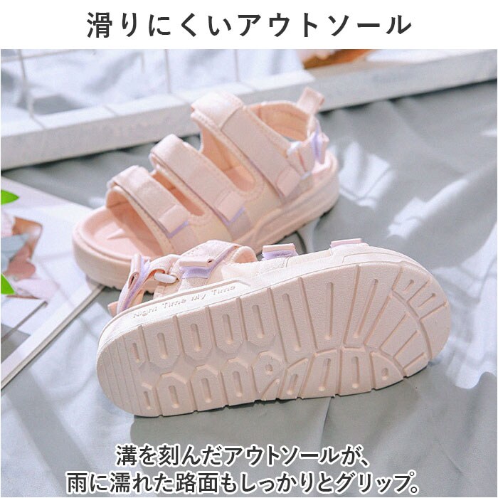 | 商品説明 | ふわっと軽い履き心地のスポーツサンダルが発売♪(レディース)【自分サイズにカスタム】面ファスナー式のベルトなので、自分サイズに微調節が可能◎甲と足首のベルトでしっかりホールド◎【動き回るママさんにも】足首までしっかりホールドする作りで歩いている時ズレにくい♪お子さまと公園に行く時やお買い物時でも活躍☆【靴擦れ防止パッド付き】かかと足首部分に擦れ防止のパット付き!摩擦を軽減し長時間履いても痛くなりにくい。【ぷにっとしたインソール】ソール部分はぷにっとした弾力性があり、柔らかソールなので履き心地がよく疲れにくい。【コーデ色々】素足で履いたり、ソックスと組み合わせたり、どんなコーデにも対応できるのも魅力の1つ。夏の外出やアウトドアにピッタリ☆【滑りにくいアウトソール】溝を刻んだアウトソールが、雨に濡れた路面もしっかりとグリップ。 |