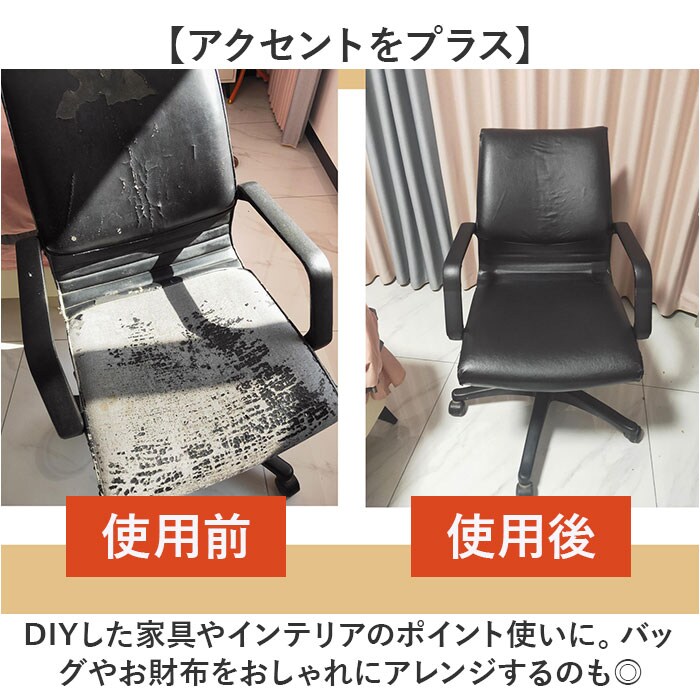 | 商品説明 | 【手軽にリメイク!】古くなった合皮の補修やDIYに「貼る合皮補修シート PUレザー」が登場。【貼るだけ簡単シールタイプ】必要なサイズにカットして貼るだけ!糊付けしたり工具など不要で、誰でも簡単に作業できるのが嬉しい♪【使いやすいサイズ感】そのままでも活用しやすい約30cmx20cmサイズ。【自然な仕上がりに】自宅のソファ、車やバイクシートの破れ・穴補修に。シボ感のあるレザーシートで馴染みやすい!【アクセントをプラス】DIYした家具やインテリアのポイント使いに。バッグやお財布をおしゃれにアレンジするのも◎【うれしいはっ水性】水や汚れをサッと弾くはっ水仕様。拭き取るだけでお手入れもラクチン。【お好みをチョイス】豊富なカラーバリエーション。お気に入りの色を選んで、楽しく補修&DIY! |