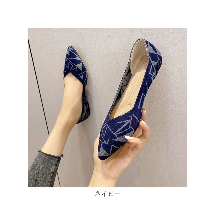パンプス ニット Vカット フラット pmy2036【ネイビー】【38(24cm)】