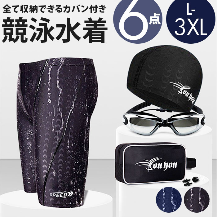 水着 メンズ 6点セット【ブラック】【XLサイズ】