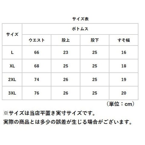 | 重量 | 約320g(※XLサイズの商品一式の重量です。) |