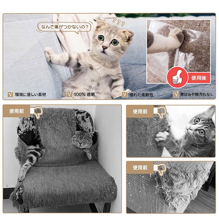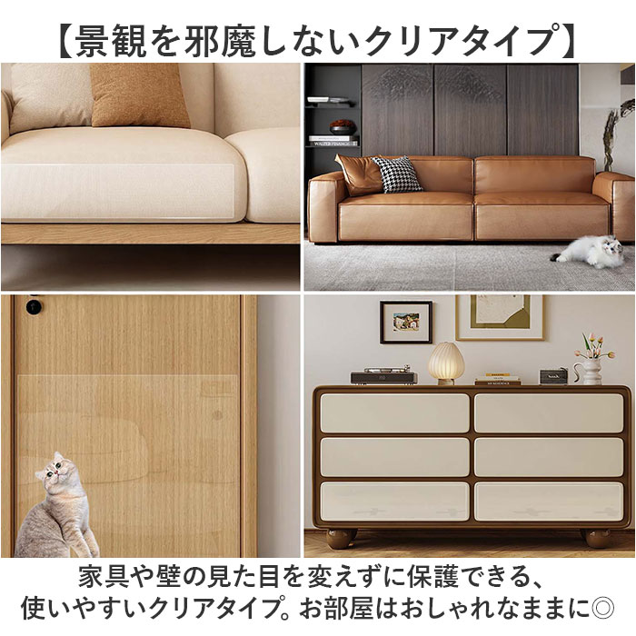 | 商品説明 | 【ソファーなどの家具や壁を守る◎】お好みサイズにカット!「猫 爪とぎシート」が登場。【自分でカットできて便利!】使いたい場所のサイズや形に合わせて、ハサミでカットできる!自由度が高いのがポイント。【どこにでもペタっと貼るだけ】粘着面を貼り付けるだけのお手軽さがGOOD◎場所を選ばずに簡単設置が可能。【景観を邪魔しないクリアタイプ】家具や壁の見た目を変えずに保護できる、使いやすいクリアタイプ。お部屋はおしゃれなままに◎【サッと拭き取りのイージーケア】汚れが気になったら、サッと水拭きができるPVC素材を採用。清潔さをキープできる! |
