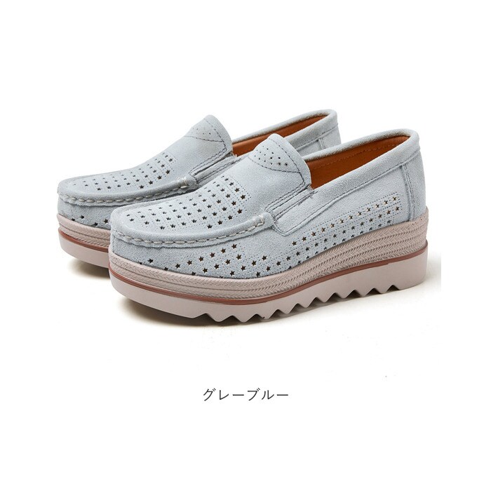 スリッポン 厚底 レディース ローファー シューズ pmy3089【グレーブルー】【39(24.5cm)】