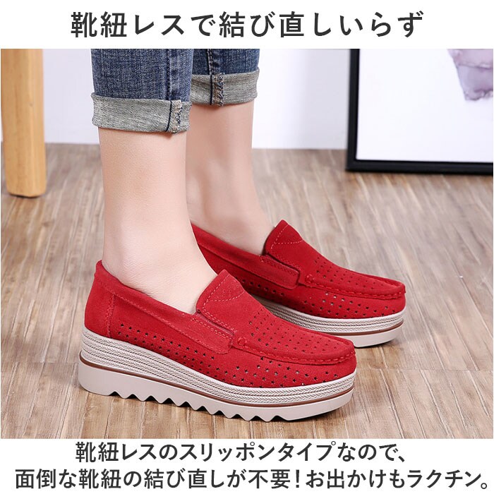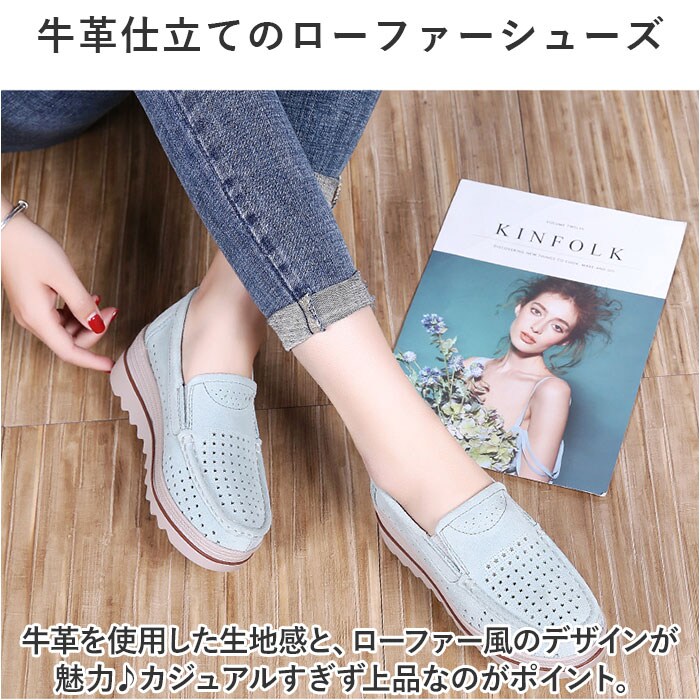 | 商品説明 | ラクチンにスタイルUP☆通気性抜群でムレにくい、厚底スリッポンが登場。【ラクチンなのにスタイルUPできる!】厚底ソールは約5センチと盛れるのに、履き心地はラクチン!身長をスラっとスタイルUPできる☆【ムレ知らずのメッシュ仕様】レザー仕様だけど、ムレにくいようメッシュ加工をON。通気性抜群でムレ知らず!【牛革仕立てのローファーシューズ】牛革を使用した生地感と、ローファー風のデザインが魅力♪カジュアルすぎず上品なのがポイント。【靴紐レスで結び直しいらず】靴紐レスのスリッポンタイプなので、面倒な靴紐の結び直しが不要!お出かけもラクチン。【両サイドにゴムを配置◎】履き口のサイドにはグーンと伸びるゴムを配置。履きやすい作りで、スマートに着脱◎【フラットなので歩きやすい】厚底だけどフラットなので、歩きやすく疲れにくい。ヒールが苦手な方にもオススメ☆【お洋服に合わせやすい】シンプルで肌なじみが良いので、スカートにもズボンにもマッチ!コーデに取り入れやすい。 |