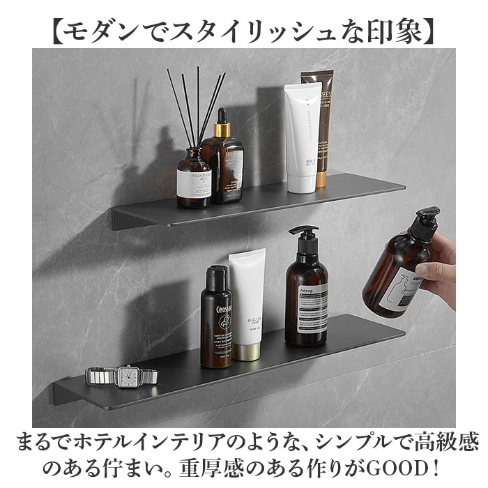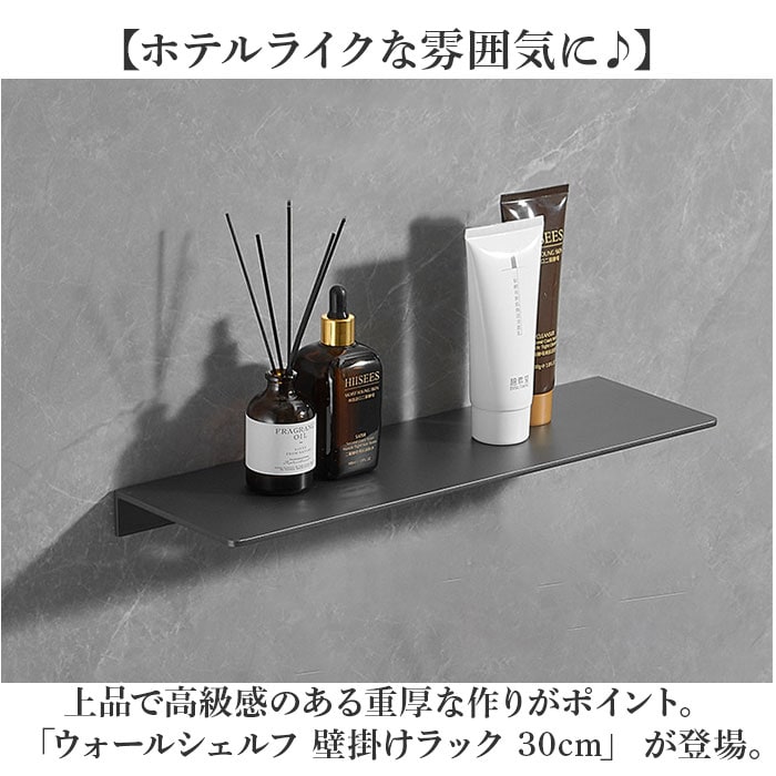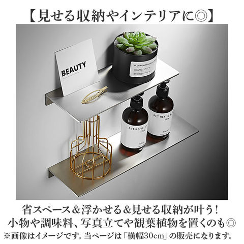 商品説明【ホテルライクな雰囲気に♪】上品で高級感のある重厚な作りがポイント。「ウォールシェルフ 壁掛けラック 30cm」 が登場。【見せる収納やインテリアに◎】省スペース&浮かせる&見せる収納が叶う!小物や調味料、写真立てや観葉植物を置くのも◎【モダンでスタイリッシュな印象】まるでホテルインテリアのような、シンプルで高級感のある佇まい。重厚感のある作りがGOOD!【錆びにくいステンレス素材】洗面所での使用もできる、ステンレス素材を採用。お手入れ簡単なのが嬉しい!【簡単設置ですぐに使える】取り付けに必要なネジ、アンカー、ネジ隠しがセット。備品を揃える必要なし◎※石膏ボード壁にも取り付け可能ですが、石膏ボード用アンカーは付属しておりません。※ドライバーや電動ドリル、水平器等は別途ご用意ください。【モノを置きやすい天板サイズ】奥行き約12センチのちょうどいいサイズ感。場所を選ばずに設置できるのが魅力。【いろんな空間にマッチ】玄関、リビング、洗面所、トイレ、寝室、サロンやカフェなどの店舗、オフィスにも♪