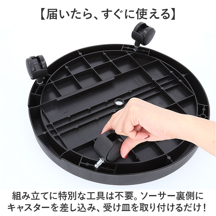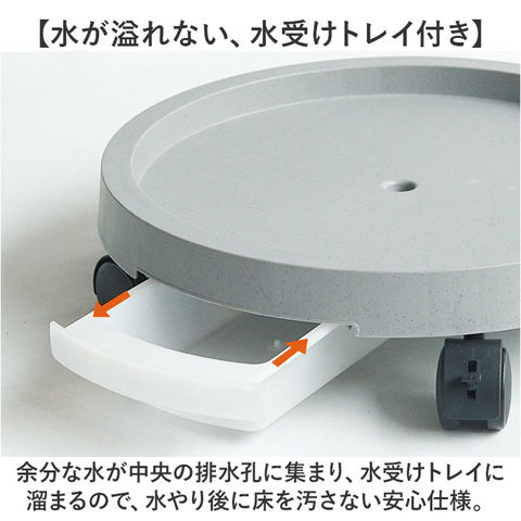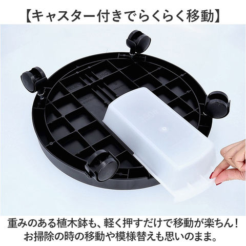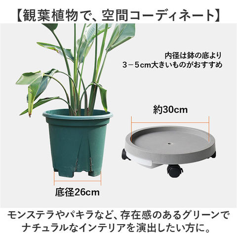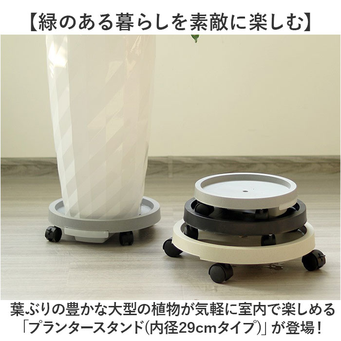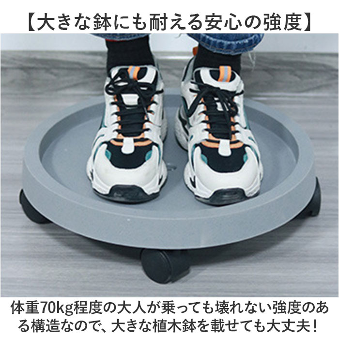 | 商品説明 | 【緑のある暮らしを素敵に楽しむ】葉ぶりの豊かな大型の植物が気軽に室内で楽しめる「プランタースタンド(内径29cmタイプ)」が登場!【キャスター付きでらくらく移動】重みのある植木鉢も、軽く押すだけで移動が楽ちん!お掃除の時の移動や模様替えも思いのまま。【水が溢れない、水受けトレイ付き】余分な水が中央の排水孔に集まり、水受けトレイに溜まるので、水やり後に床を汚さない安心仕様。【ロック付きキャスターで安全】・360度回転するキャスターはワンタッチで固定できるロックレバー搭載。滑りやすい床でも安心。【大きな鉢にも耐える安心の強度】体重70kg程度の大人が乗っても壊れない強度のある構造なので、大きな植木鉢を載せても大丈夫!【サッと洗えて、お手入れ楽ちん】汚れが気になったらサッと洗える。ソーサーも水受けトレイもお手入れの楽なポリプロピレン素材。【届いたら、すぐに使える】組み立てに特別な工具は不要。ソーサー裏側にキャスターを差し込み、受け皿を取り付けるだけ!【使い方はアイディア次第♪】頻繁に位置を移動する扇風機やスタンド型ヒーターのスタンドや、重い物の運搬にも大活躍。【観葉植物で、空間コーディネート】モンステラやパキラなど、存在感のあるグリーンでナチュラルなインテリアを演出したい方に。 |