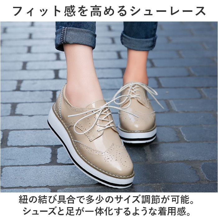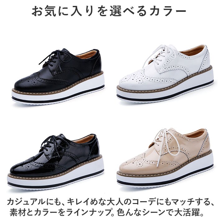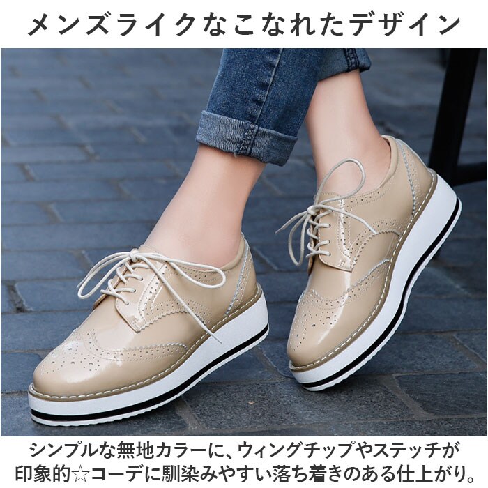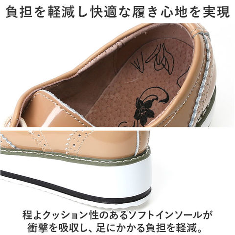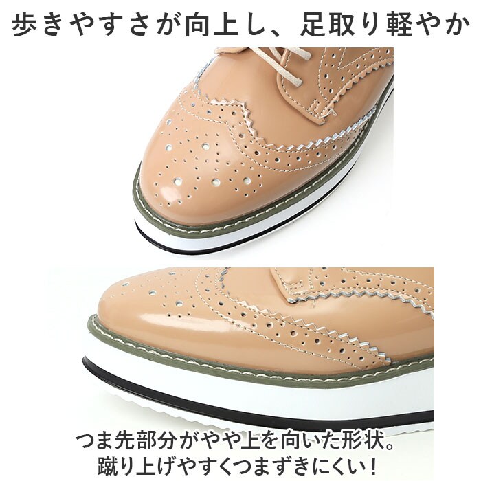 | 商品説明 | 足元もおしゃれに。いつものコーデがワンランクアップする「プラットフォームシューズ」が新登場。【安定感がありつつスタイルアップも】前後の段差を抑えた厚底仕様のプラットフォームシューズ。安定性をキープしつつ、自然なスタイルアップが叶う♪【メンズライクなこなれたデザイン】シンプルな無地カラーに、ウィングチップやステッチが印象的☆コーデに馴染みやすい落ち着きのある仕上がり。【フィット感を高めるシューレース】紐の結び具合で多少のサイズ調節が可能。シューズと足が一体化するような着用感。【負担を軽減し快適な履き心地を実現】程よクッション性のあるソフトインソールが衝撃を吸収し、足にかかる負担を軽減。【歩きやすさが向上し、足取り軽やか】つま先部分がやや上を向いた形状。蹴り上げやすくつまずきにくい!【お気に入りを選べるカラー】カジュアルにも、キレイめな大人のコーデにもマッチする、素材とカラーをラインナップ。色んなシーンで大活躍。 |