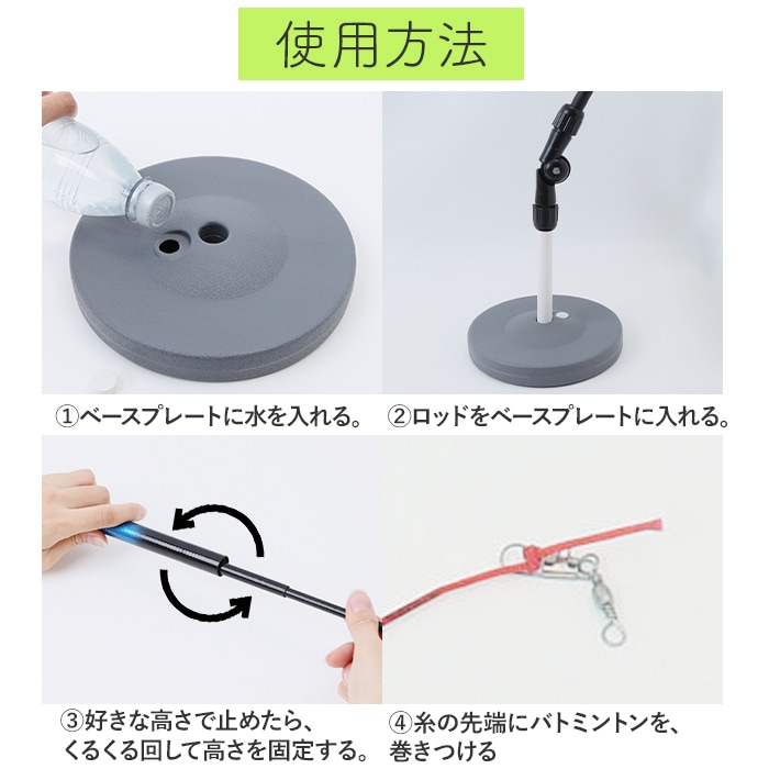 | 商品説明 | 【一人でもバドミントンができる】一人でも気軽にバドミントンができるバドミントントレーナーが登場。【シャトルを吊り下げるだけ】スタンドにロッドを立てシャトルを吊り下げるだけですぐに使用可能。【一人でも使える】打ったらそのまま自分に返ってくるので一人でもバドミントンができる。【屋内屋外どちらでも可能】・ロッドの高さは約3.3cm~約64cmまで。使用シーンに合わせて高さの調節OK!【トレーニングから運動用に】部活や教室のトレーニングや自宅での軽い有酸素運動にも☆幅広く使えるのもポイント。【シャトル付属】嬉しい3個のシャトル付属。収納ケース入り。 |