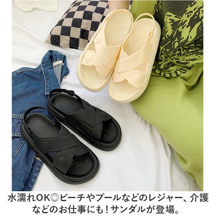 | 商品説明 | 水濡れOK◎ビーチやプールなどのレジャー、介護などのお仕事にも!サンダルが登場。【PVC使用だから水濡れOK◎】水に濡れても大丈夫なPVC素材を使用!汚れが気になったら水洗いができるのもメリット☆【幅広いシーンで活躍するサンダル】ビーチやプール、川遊び、BBQなどのレジャーはもちろん、看護や介護などのお仕事現場でも◎【軽量&柔らかで疲れにくい】軽量で足に負担が少なく、クッション性のある柔らかなソールは衝撃を吸収!だから疲れにくい。【サイズ調節ができるストラップ】足首のストラップには穴を4つ搭載。自分のサイズに合わせて調節ができ、安定感抜群◎【お洋服に合わせやすい】シンプルな定番色なので、スカート、ズボン、制服など、どんなスタイルにもマッチ。【滑りにくいので安心ソール】ソール部分は凸凹加工済み。雨の日や濡れた地面もしっかりグリップする、滑りにくい安心仕様。 |