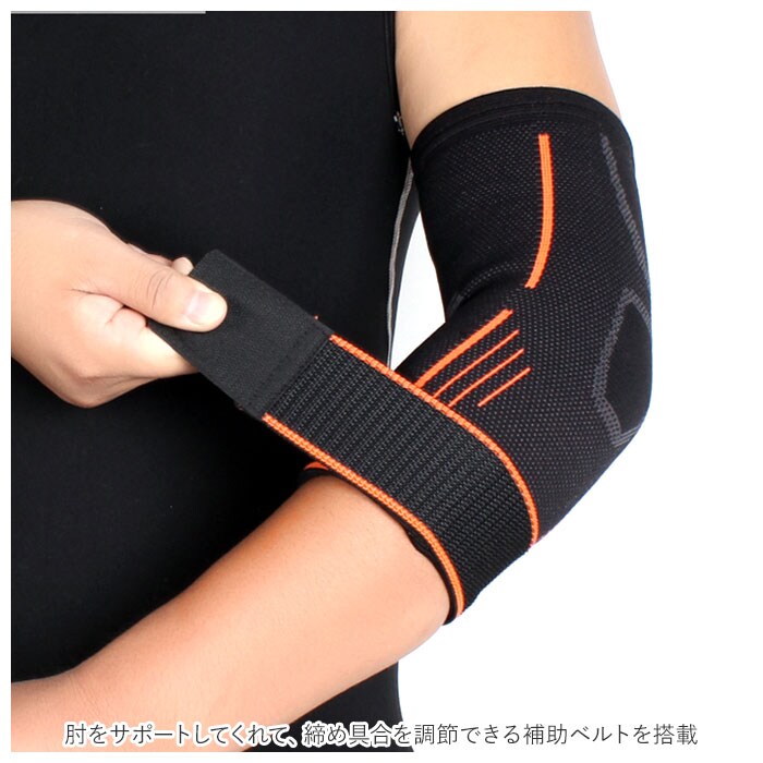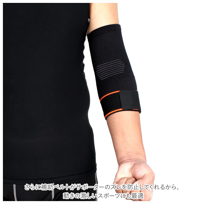 | 商品説明 | 日常やスポーツでの肘の痛みや怪我予防に使えるサポーター。肘をサポートしてくれて、締め具合を調節できる補助ベルトを搭載。さらに補助ベルトがサポーターのズレを防止してくれるから、動きの激しいスポーツにも最適。伸縮性、通気性に優れた素材を採用。ムレにくく長時間の着用も快適で、肘の曲げ伸ばしの負担をサポート。・S~XLの4サイズ展開。男女兼用で使えるアイテム。 |